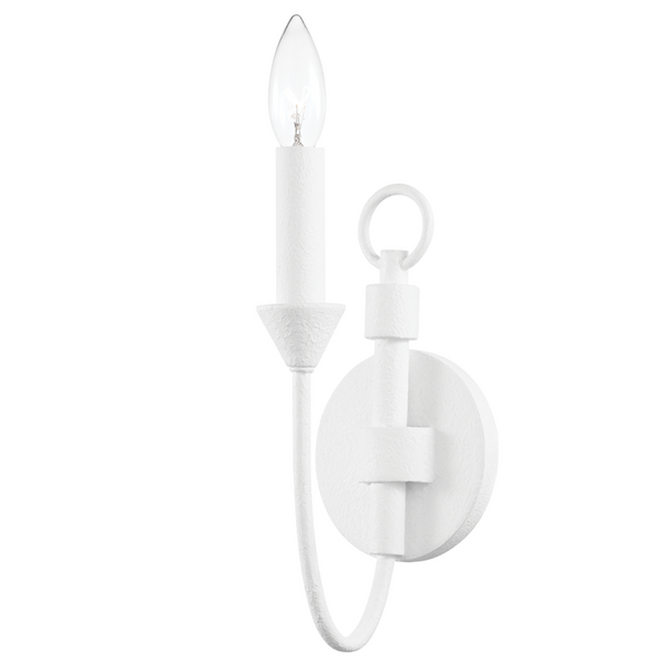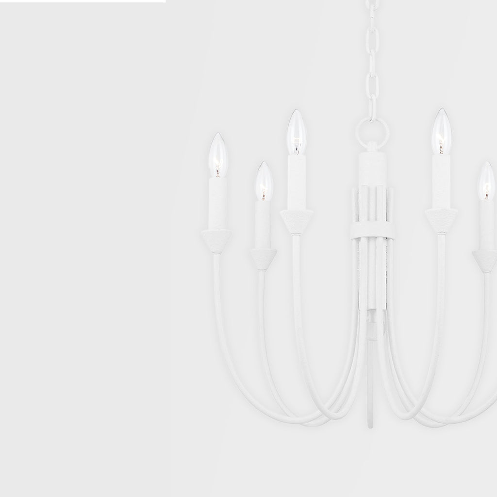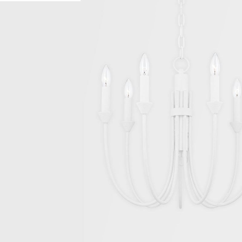 Cate's large swooping arms give the piece a presence while still feeling open and airy at the same time. Whether as a simple single sconce or a breathtaking 18-light chandelier, each smooth arm holds a solitary bulb that emits a warm glow. Make a bold statement in Forged Iron or keep things beautifully clean in White Gesso.