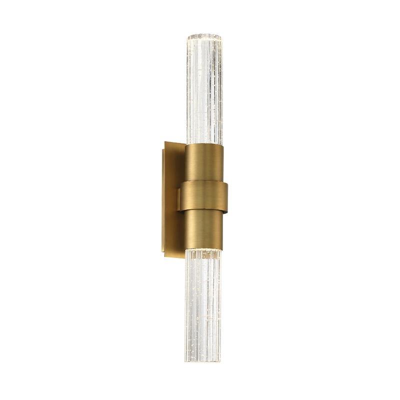 The Ceres Wall Sconce by Modern Forms is a sophisticated and charming wall fixture for living rooms, hotels, restaurants, show rooms, and resorts. Finished in aged brass polish, this lamp boasts of luxurious appeal that works as a décor when switched off. It is a versatile wall sconce that can be mounted either vertically or horizontally. The luminaire has used V-cut K5 crystals to complete its understated design. It integrates a dimmer that allows you to adjust the brightness of its LED light sources for a soothing and intimate atmosphere. The bright illumination cast by the wall fixture does not rise the temperature of the room, keeping the environment comfortable.