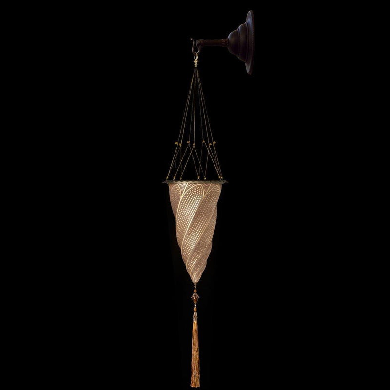 The Venetian brand Venetia Studium carries over a hundred years of tradition of its craft. Its rich collections include not only the famous silk lamps, but also glass and contemporary lamp designs. The company also creates clothing inspired by ancient Greece, as well as furniture and tableware that combine colorful Arabic patterns, reminiscent of Sultan luxury with 24K gold finishes and high-quality materials - silk and velvet. All products are hand-made with the greatest care and respect to traditional techniques.