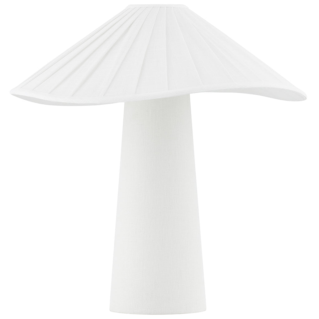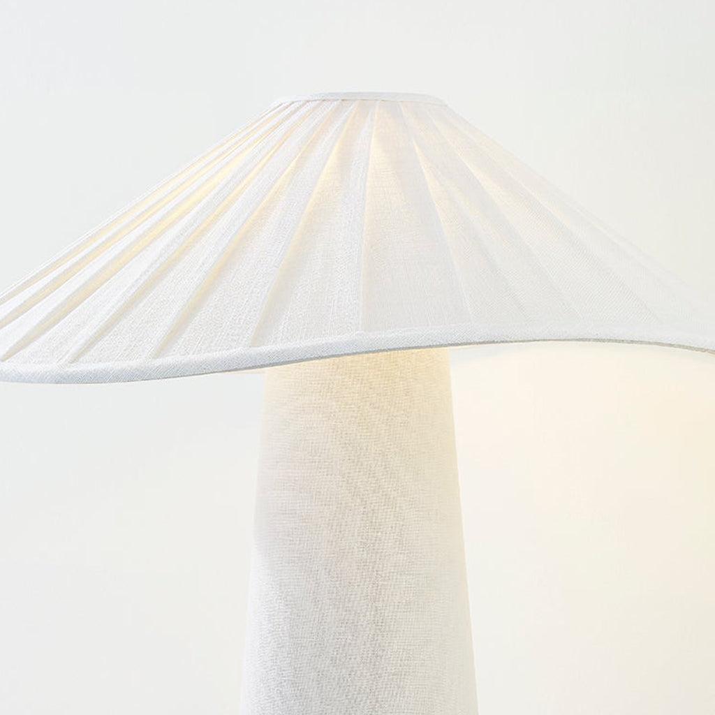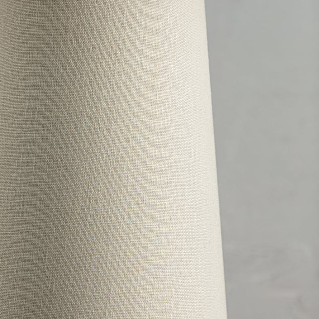 Chanterelle's pleated natural linen shade feels soft and fresh and the undulating edge adds sophistication and movement. The tapered base is also wrapped in natural linen, creating an allover linen materiality and clean monochromatic palette that makes this modern organic table lamp feel right on trend.