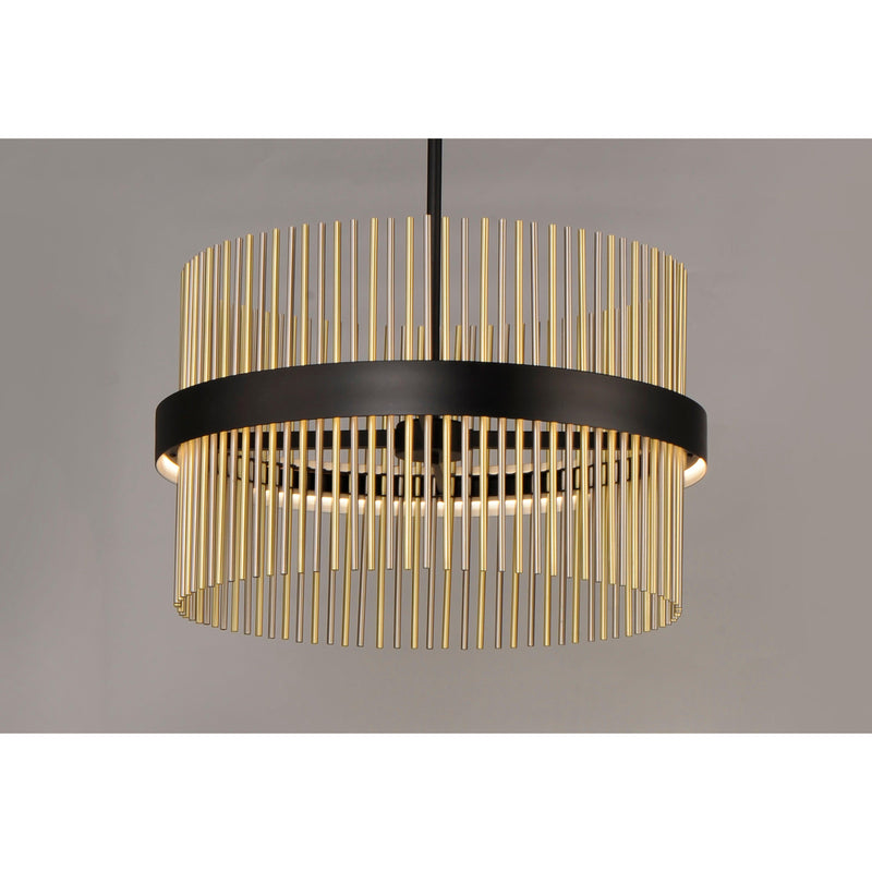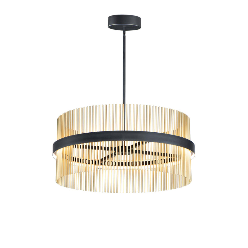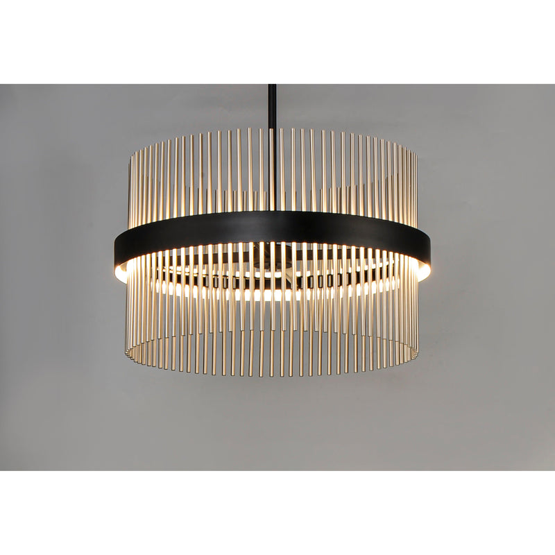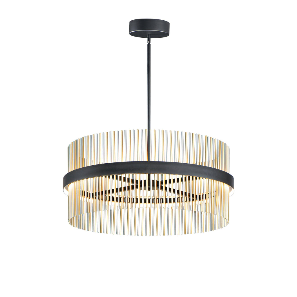 Wide bands of Matte Black metal supports an evenly spaced row of thin tubing finished in your choice of Satin Brass, Satin Nickel or a combination of the two. The stylish design is connected by WiZ that enables the lighting's White Ambiance between 2700-6400 Kelvin. Marvel at the ring's soft indirect lighting dispersion cast light both up and down and shine along the tubes aglow. Set daylight white options for concentration tasks and energize your body. Similarly take notice of the effect when setting a warmer tone at the end of the day or to add some ambiance.