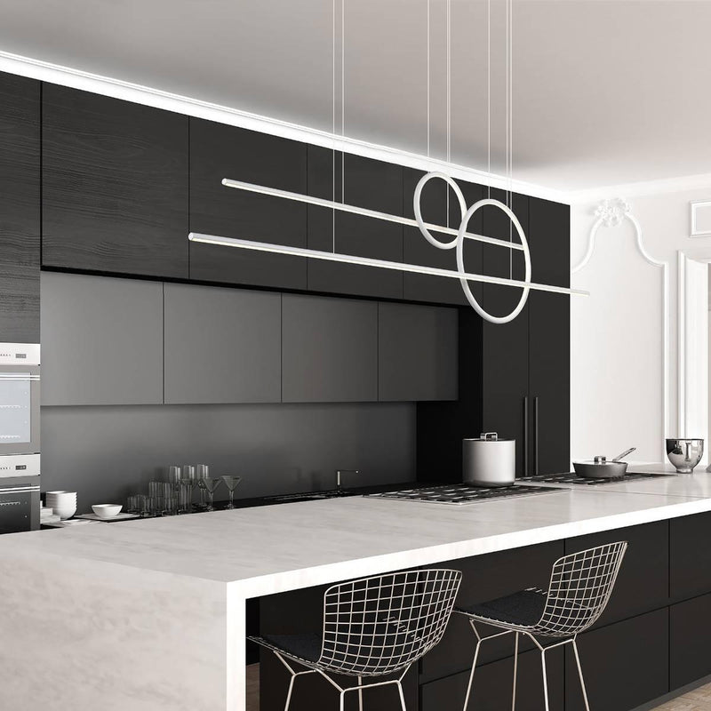Brighten up your house with the Chute Calypso Pendant by Kuzco Lighting. This hanging light features extruded aluminum rings and cylinders. These rings and cylinders hang by 120" coaxial wire that can be adjusted to suit your needs. The pendant has up and down LED lights that illuminate the space with a white acrylic diffuser. The light fixture has a powder-coated finish in black and white color options. This Chute Calypso pendant light can be hung in every room of your house, office, or commercial setting.