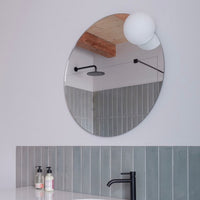 Illuminated decorative mirror with glass shade and integrated dimmable LED. Ideal for the bathroom, living room, bedroom or corridor.
