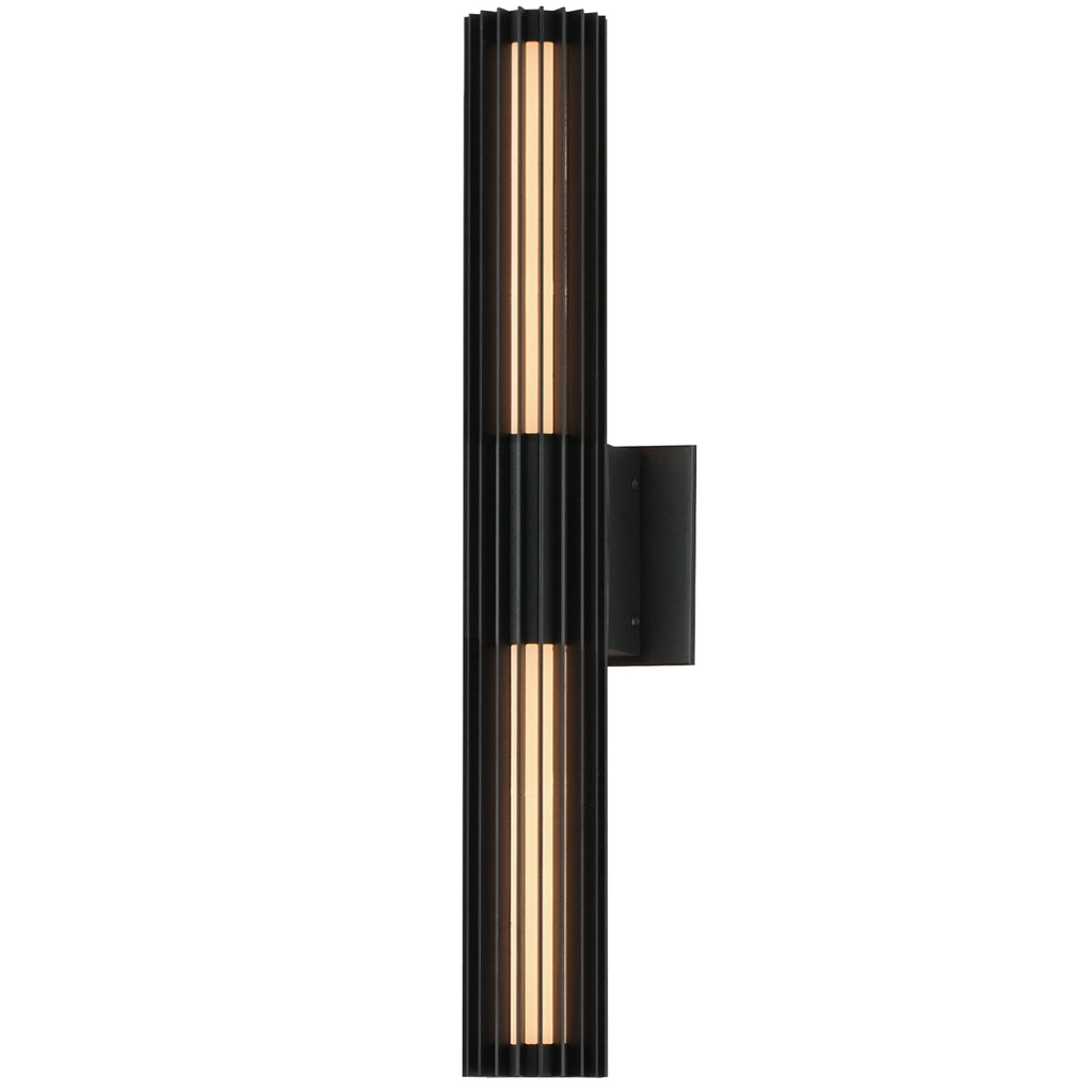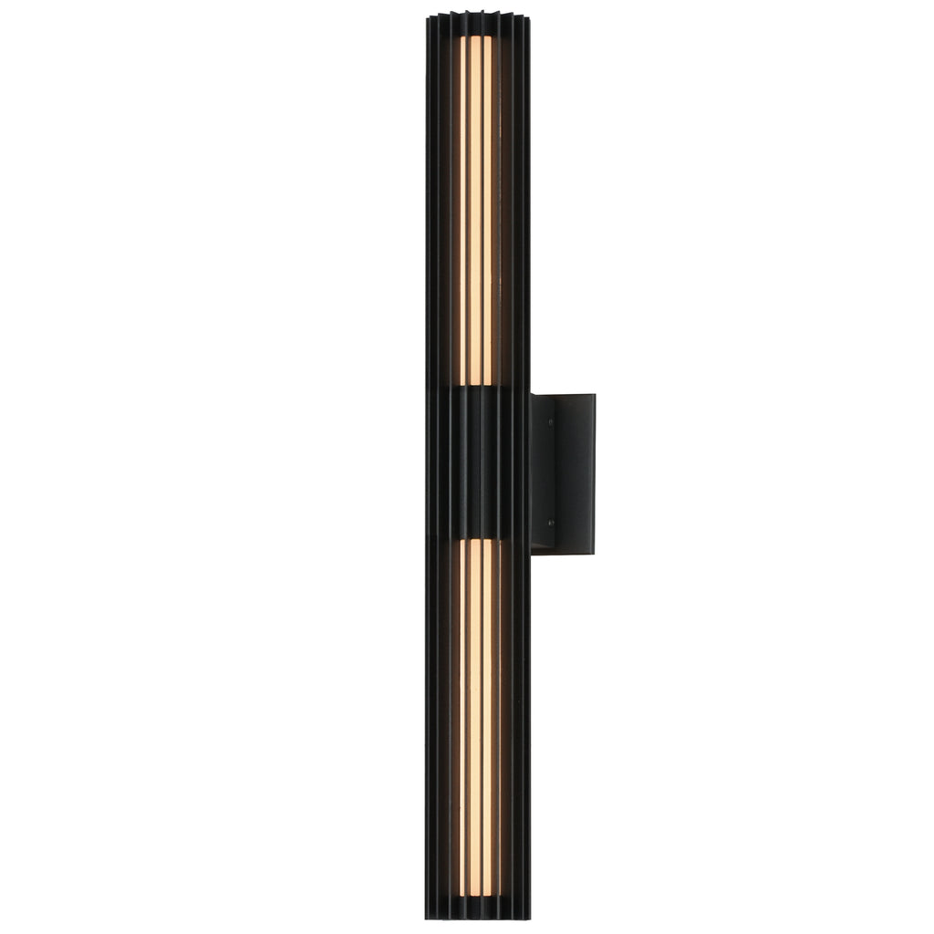 Vertical aluminum strands surround an acrylic LED tube that shines omnidirectional light filtered by the frame. The thin profile of the overall column extends less than 4" offering ADA compliant applications. Available in a variety of sconce sizes, the design is finished in a matte Black finish that complements most settings