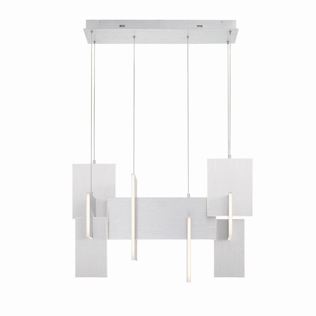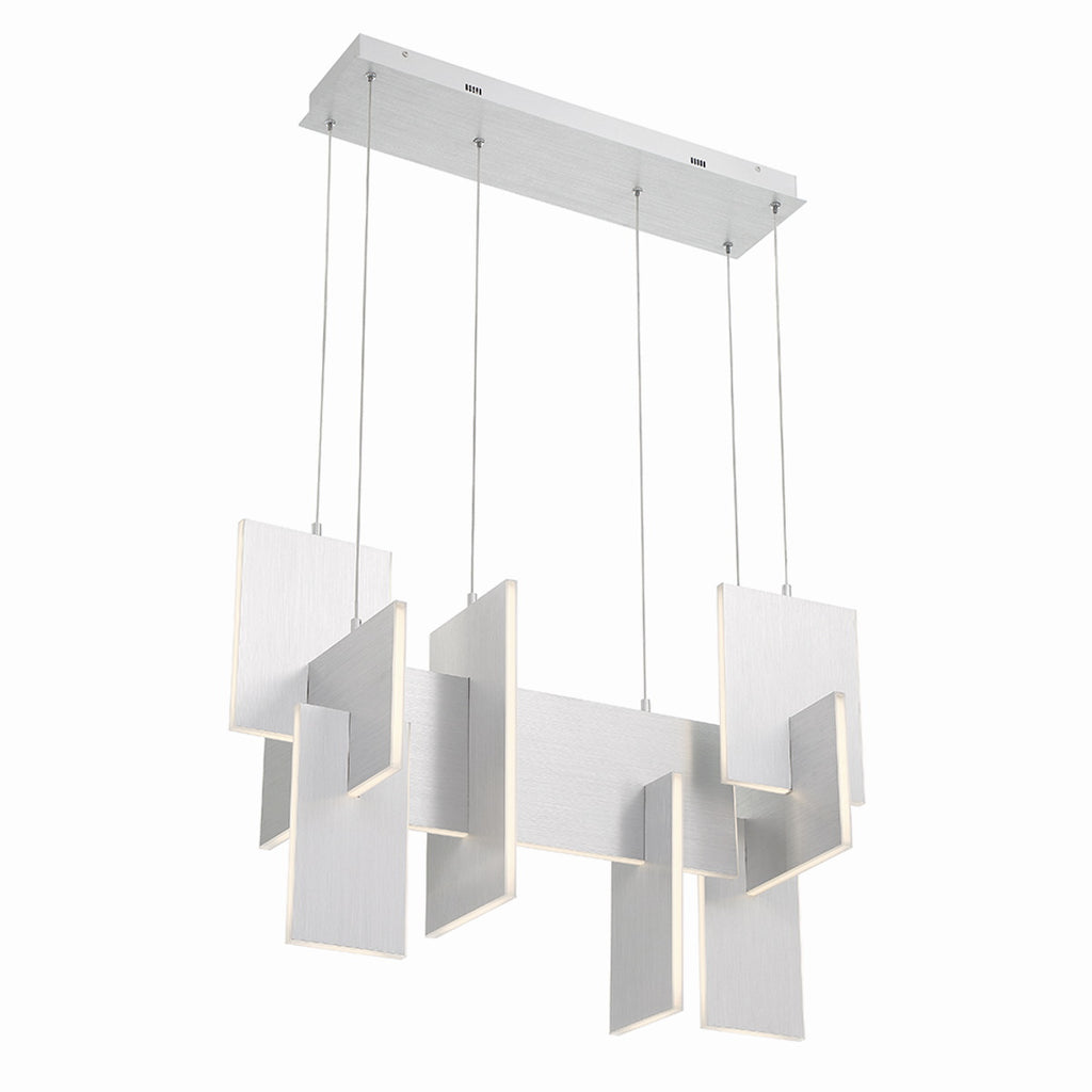 Take your interior designing to another level with this Coburg Linear LED Chandelier by Eurofase. The contemporary construction has rectangular metal structures a=joined adjacent to each other at different angles. Each beautiful metal structure has different LED light sources that together radiate to light up the area below. It operates on 120V to create an organic atmosphere. This chandelier is suitable for residential and commercial spaces, it is available in smooth gold, aluminum and black finish.