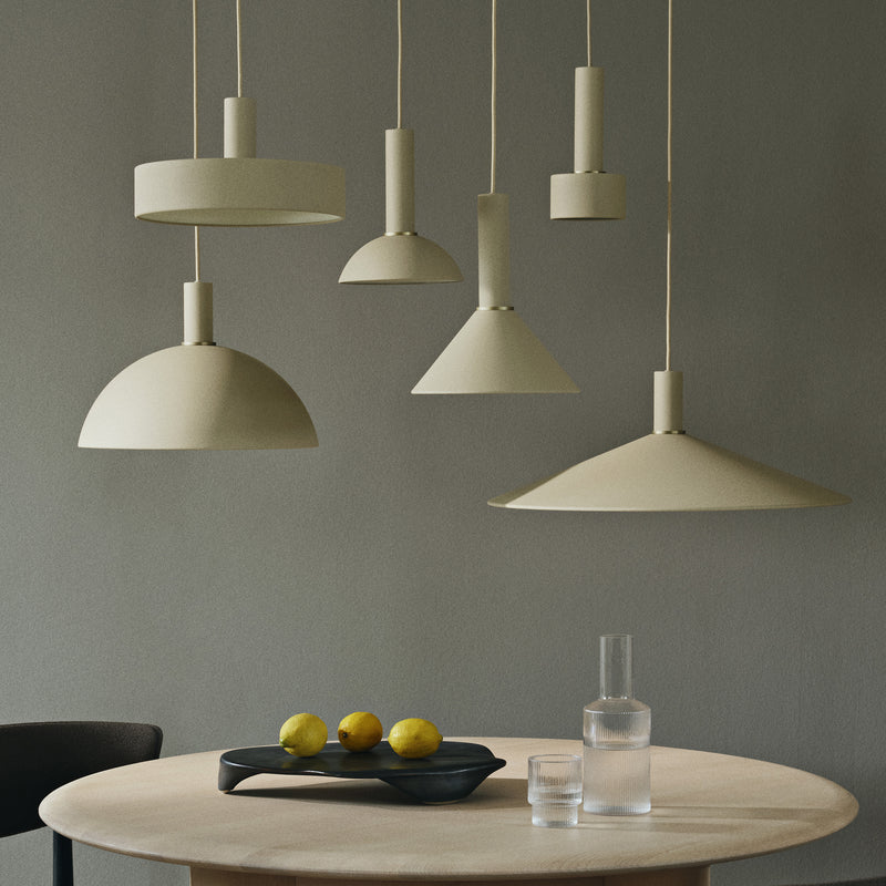 This classically domeshaped lampshade is designed to be a primary light source for dining or reading. Directing and focusing the light where you want it, this large and decorative shade is crafted in powder coated metal with a light-reflecting white interior. The lampshade is compatible with all socket pendants from the Collect Lighting series.