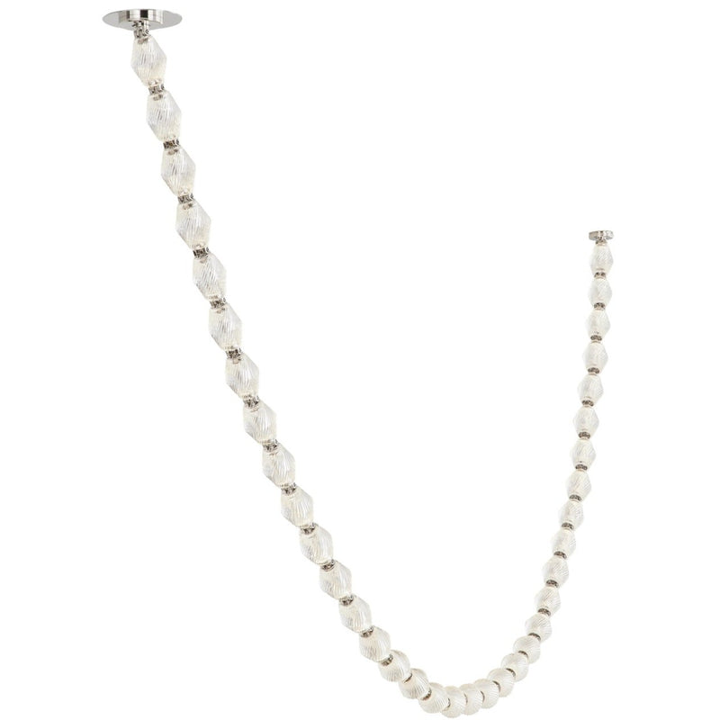 The Collier by Sean Lavin for Tech Lighting exudes luxury and sophistication. Solid faceted crystal fully encapsulates integrated LED modules interlocked by solid brass connectors. Available in multiple length strands for the ultimate in customization. Creates an incredible light sculpture with stunning illumination. The Collier features solid faceted crystal manufactured in the Czech Republic. The natural brass connectors are custom engineered to support the crystal and add additional beauty to the piece. Available with remote or surface mounted driver options. Predetermined length options allow for easy ordering with virtually unlimited versatility.
