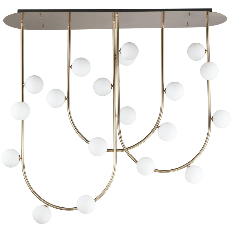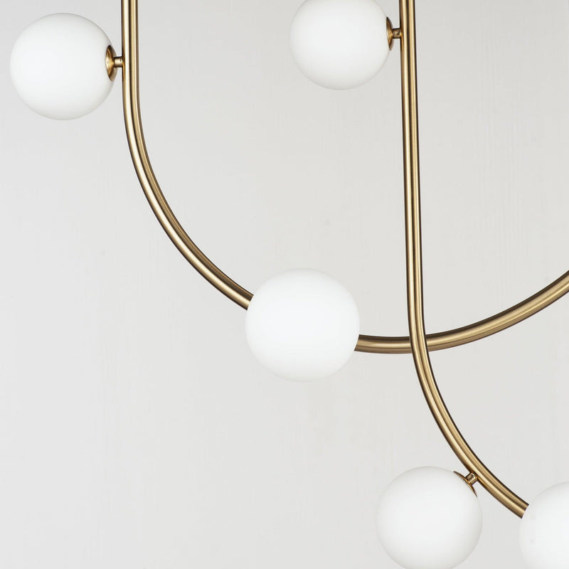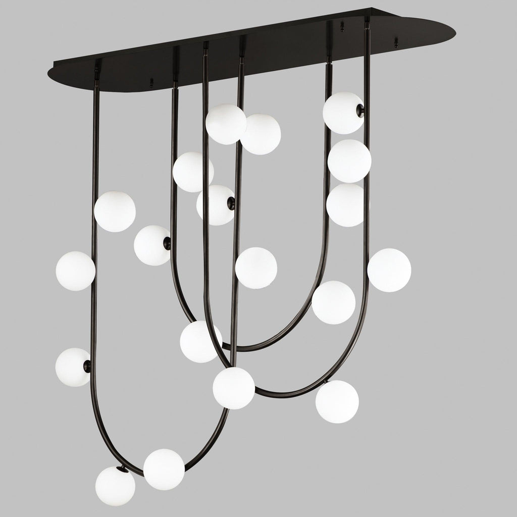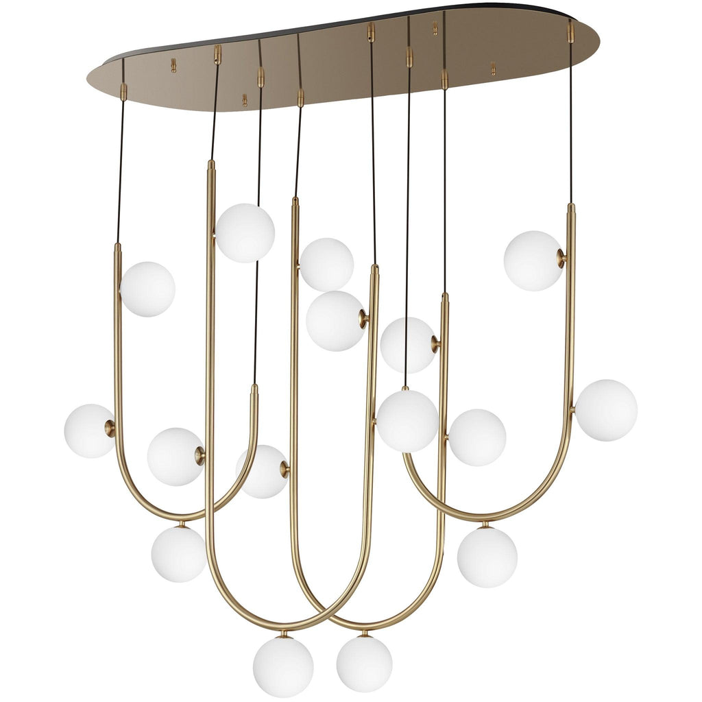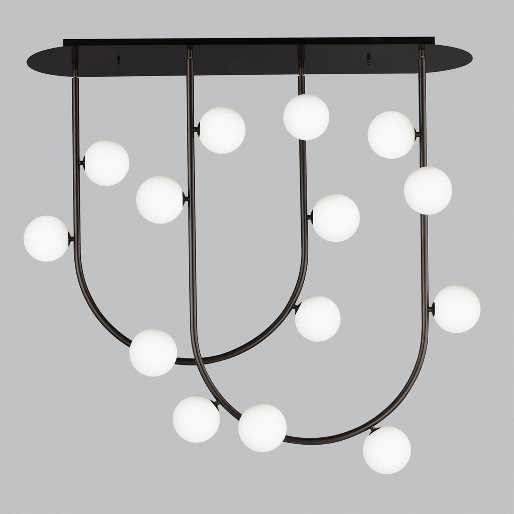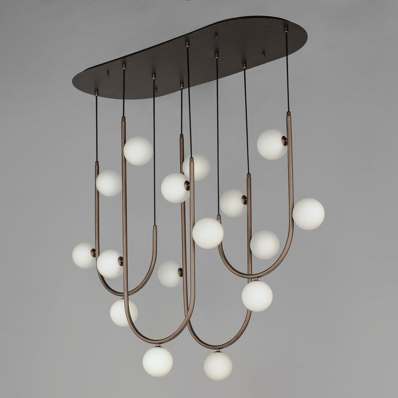 Gentle curves descend from the ceiling and pop with spheres of satin white glass shades. Strikingly modern, yet elegantly timeless the Contour series exemplifies Nina Magon's design aesthetic using curved silhouettes and bold applications of color. Offered in a variety of rich metallic finishes including Brushed Bronze, Heritage Brass, and Polished Chrome as well as made-to-order powder coat finishes, this collection provides the flexibility to match more spaces. Choose either warm 3000k or bright white 4000k LED lamps included and complete this energy-efficient solution that'll add visual interest to your space that can last generations.