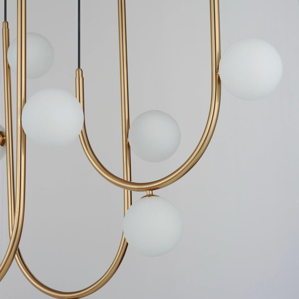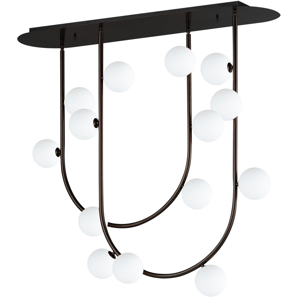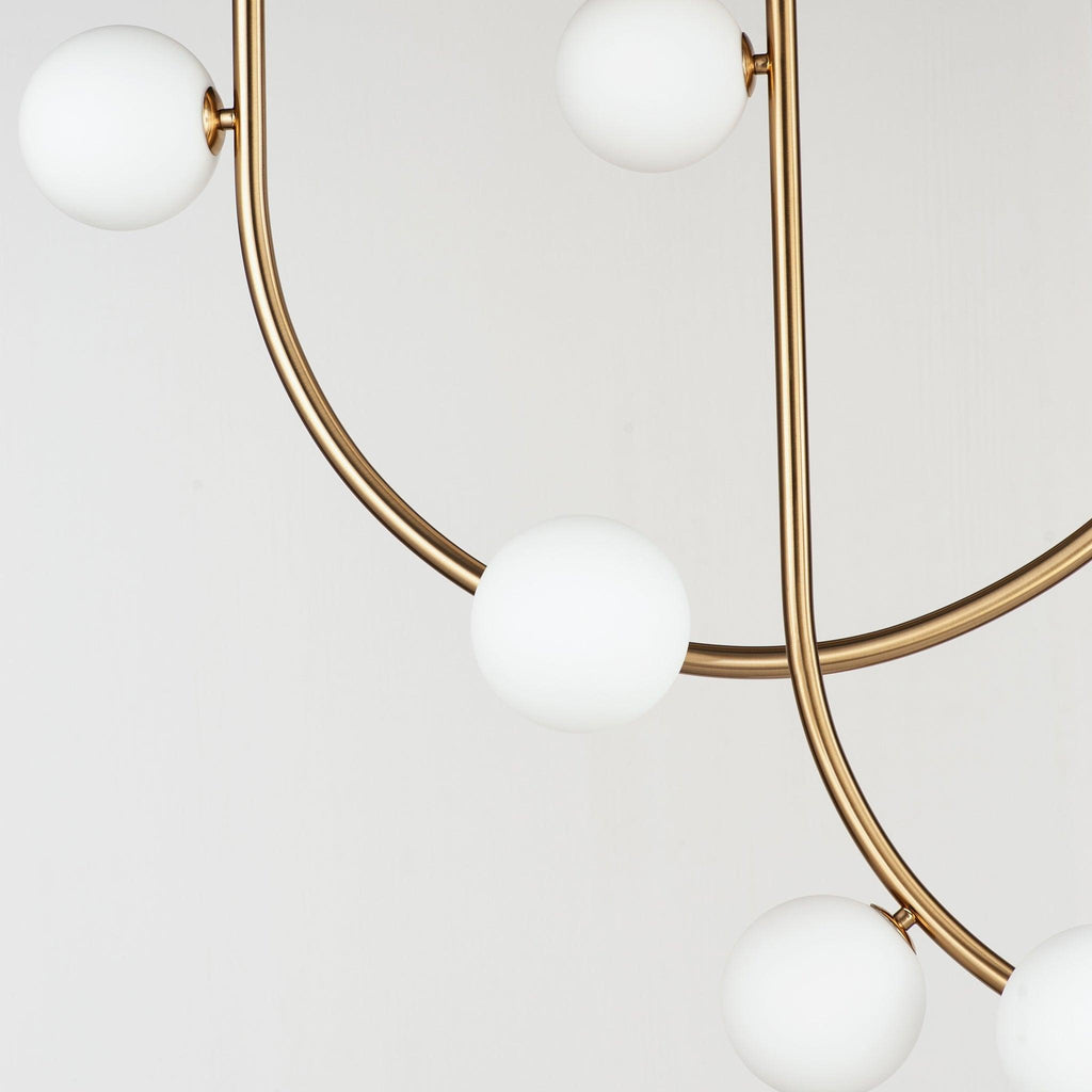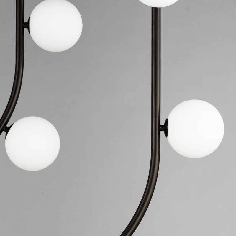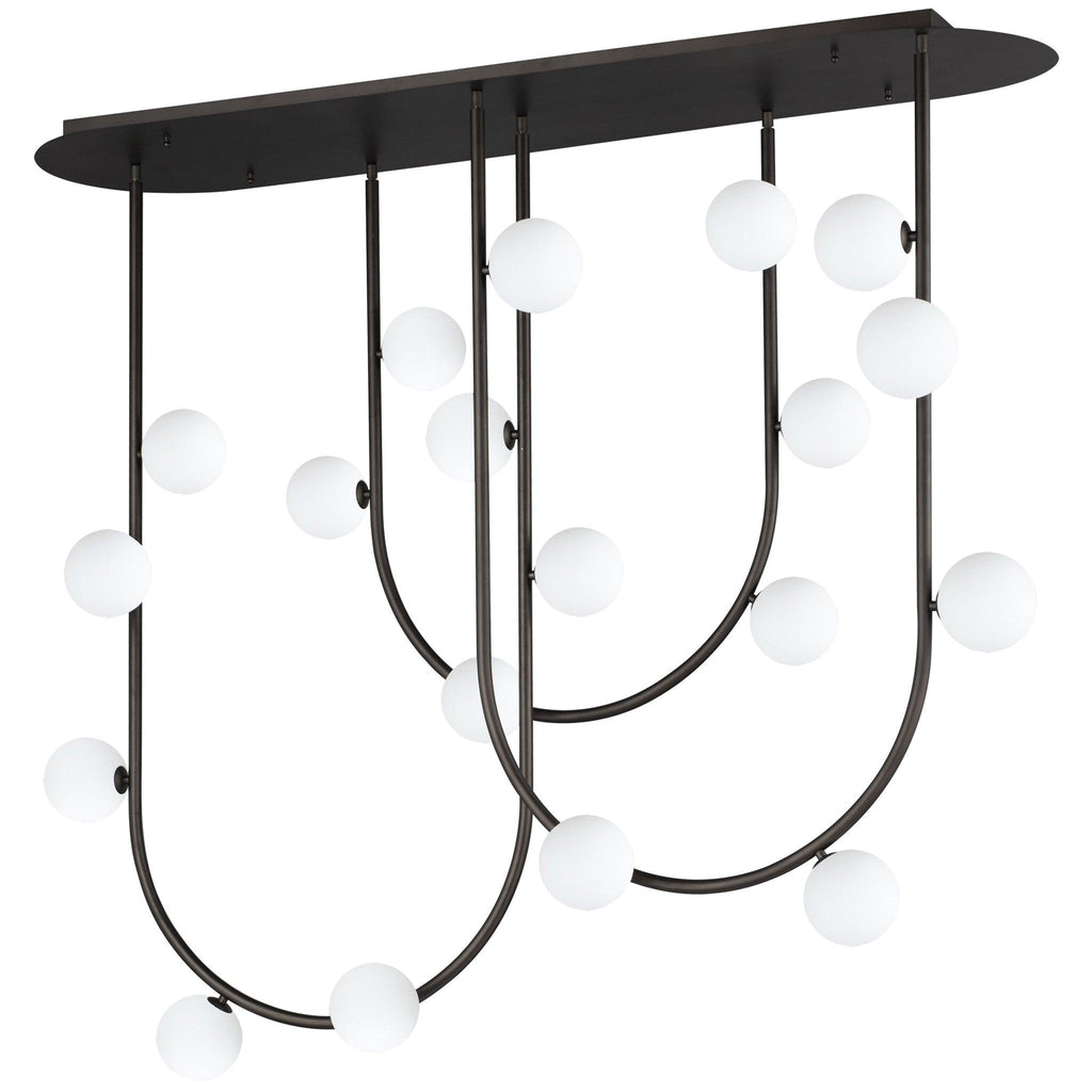 Gentle curves descend from the ceiling and pop with spheres of satin white glass shades. Strikingly modern, yet elegantly timeless the Contour series exemplifies Nina Magon's design aesthetic using curved silhouettes and bold applications of color. Offered in a variety of rich metallic finishes including Brushed Bronze, Heritage Brass, and Polished Chrome as well as made-to-order powder coat finishes, this collection provides the flexibility to match more spaces. Choose either warm 3000k or bright white 4000k LED lamps included and complete this energy-efficient solution that'll add visual interest to your space that can last generations.