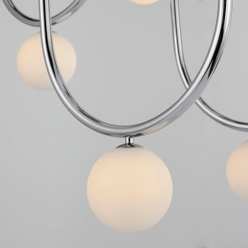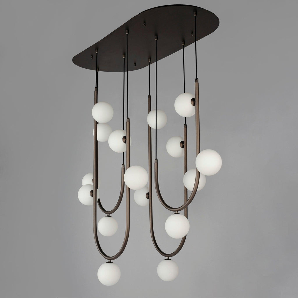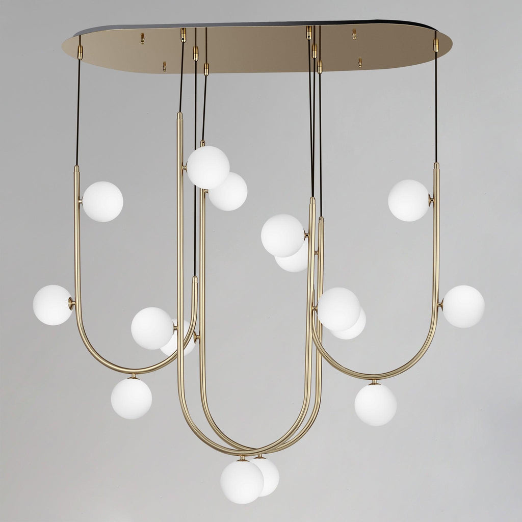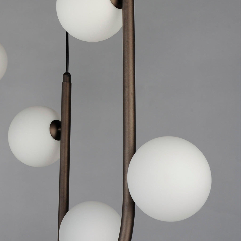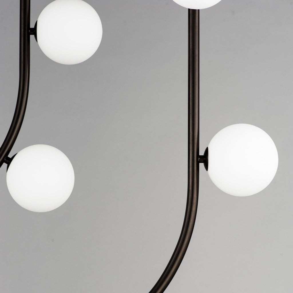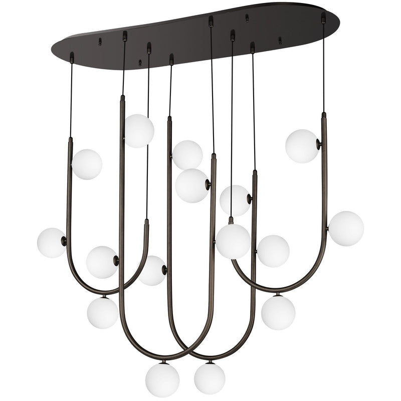 Gentle curves descend from the ceiling and pop with spheres of satin white glass shades. Strikingly modern, yet elegantly timeless the Contour series exemplifies Nina Magon's design aesthetic using curved silhouettes and bold applications of color. Offered in a variety of rich metallic finishes including Brushed Bronze, Heritage Brass, and Polished Chrome as well as made-to-order powder coat finishes, this collection provides the flexibility to match more spaces. Choose either warm 3000k or bright white 4000k LED lamps included and complete this energy-efficient solution that'll add visual interest to your space that can last generations.