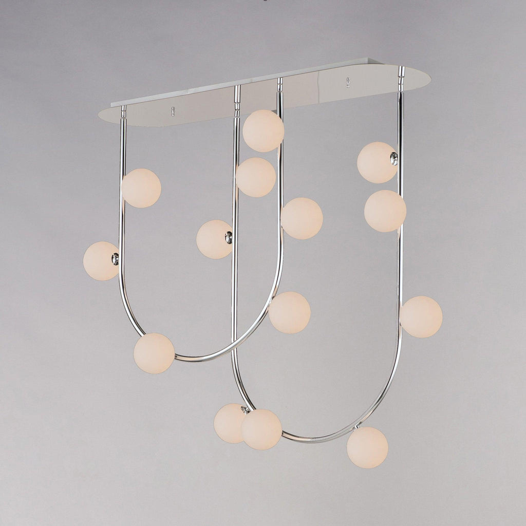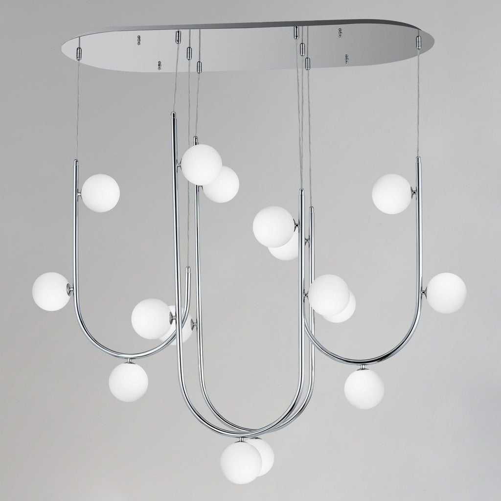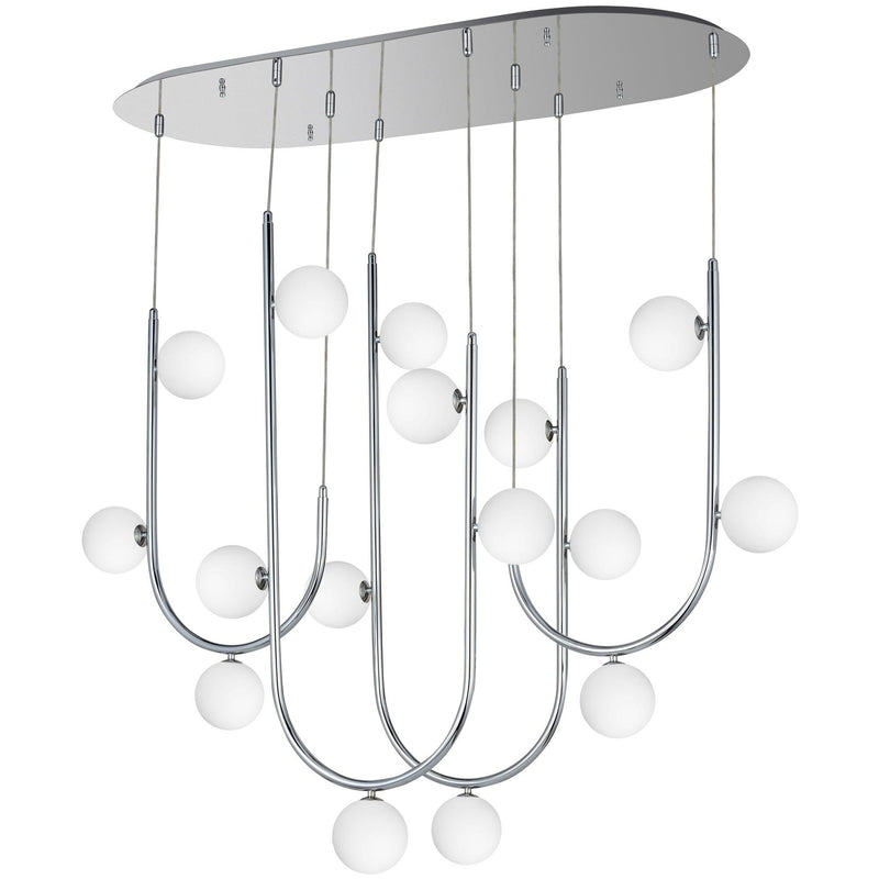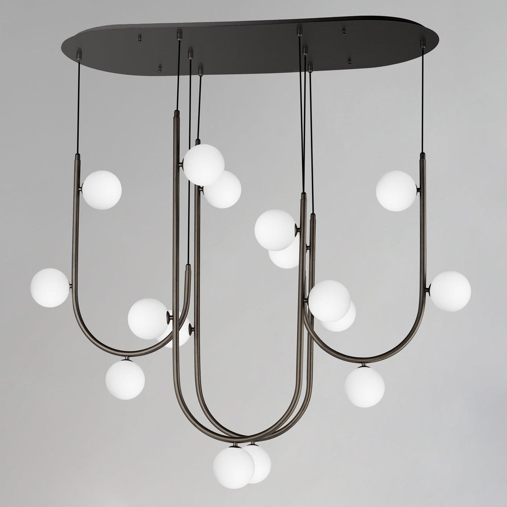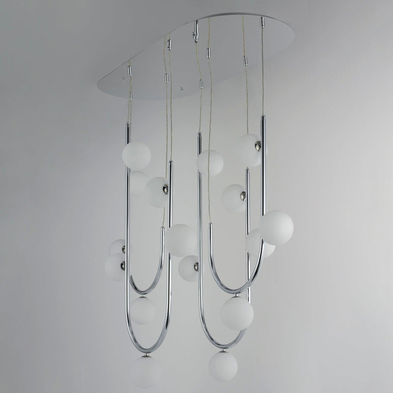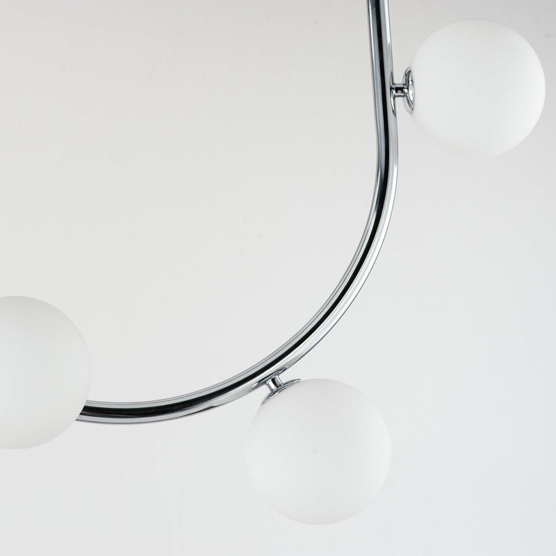 Gentle curves descend from the ceiling and pop with spheres of satin white glass shades. Strikingly modern, yet elegantly timeless the Contour series exemplifies Nina Magon's design aesthetic using curved silhouettes and bold applications of color. Offered in a variety of rich metallic finishes including Brushed Bronze, Heritage Brass, and Polished Chrome as well as made-to-order powder coat finishes, this collection provides the flexibility to match more spaces. Choose either warm 3000k or bright white 4000k LED lamps included and complete this energy-efficient solution that'll add visual interest to your space that can last generations.