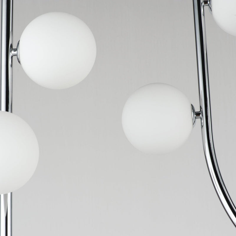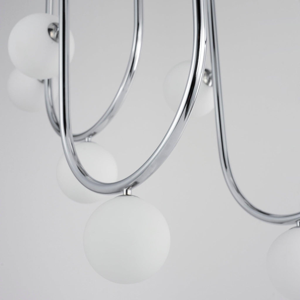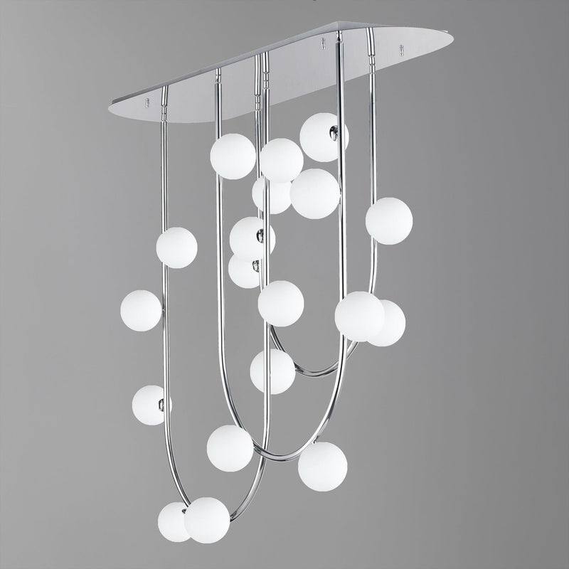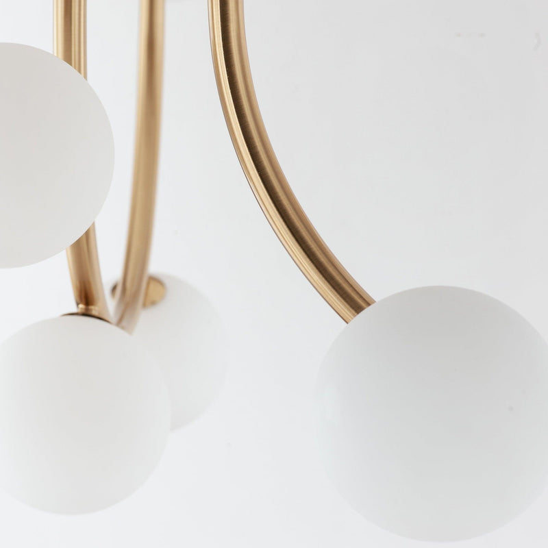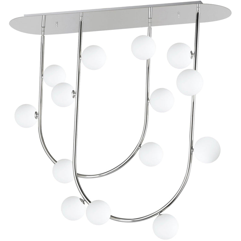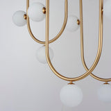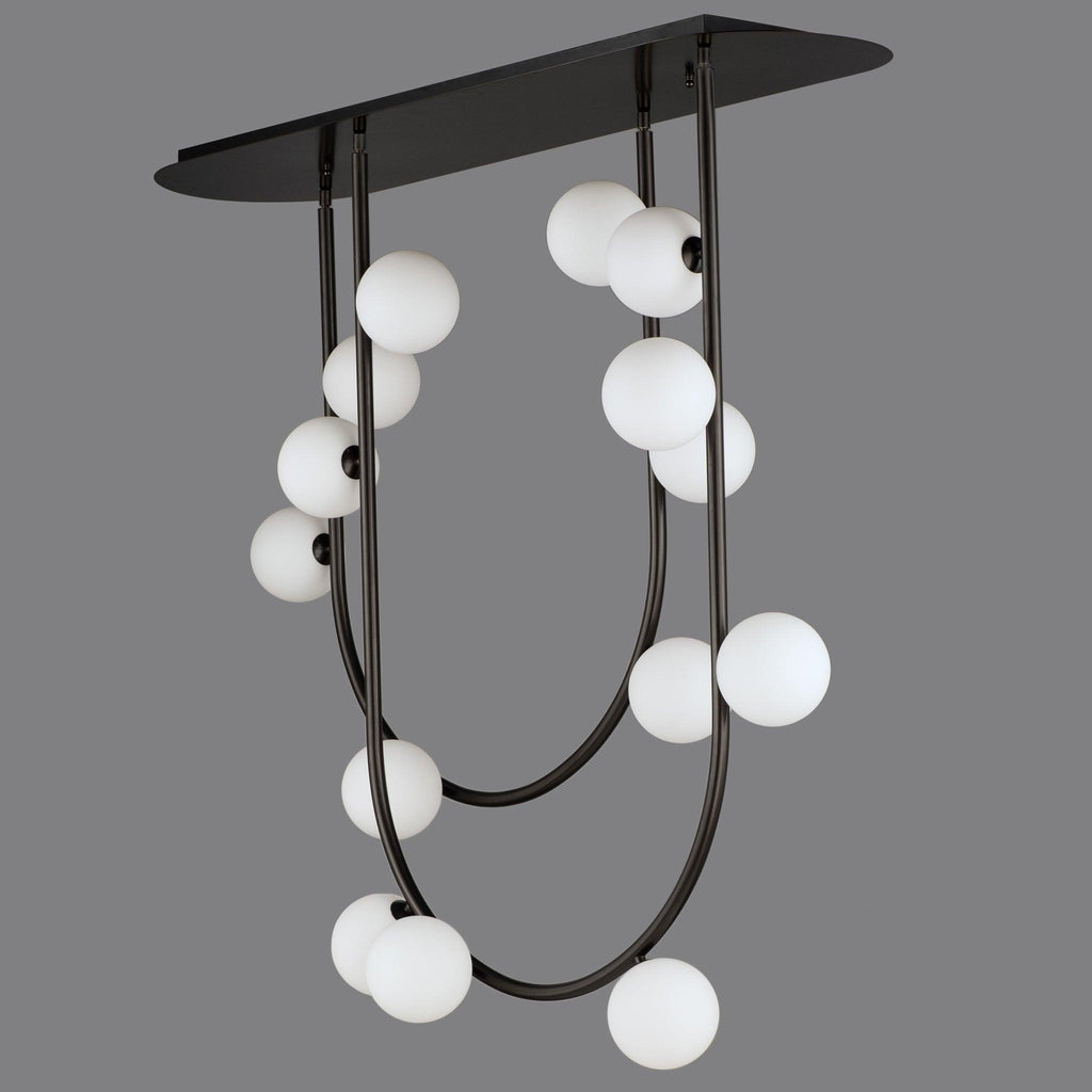 Gentle curves descend from the ceiling and pop with spheres of satin white glass shades. Strikingly modern, yet elegantly timeless the Contour series exemplifies Nina Magon's design aesthetic using curved silhouettes and bold applications of color. Offered in a variety of rich metallic finishes including Brushed Bronze, Heritage Brass, and Polished Chrome as well as made-to-order powder coat finishes, this collection provides the flexibility to match more spaces. Choose either warm 3000k or bright white 4000k LED lamps included and complete this energy-efficient solution that'll add visual interest to your space that can last generations.