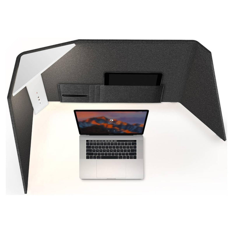 The Corner Office 30 LED Light by Pablo Designs is expressively designed to personalize any open desktop space. It is ideal to be used in environments where shared desks are used or to create a small workplace in any corner of the house. This incorporates an anti-glare LED light source, a simple switch for dimming the light, a USB port for charging mobile and a power port for charging laptops, etc. The Corner Office also has a pocket for holding accessories like mobiles and tablets, important documents or papers and some other small stuff. It has fabric side panels which are available in chestnut, anthracite, stone grey and turquoise color options. This Corner Office is portable and can be restructured anywhere depending on the changing work environments.