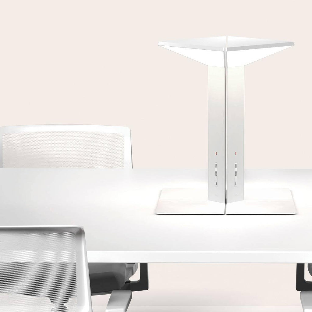 Imagined and created by designers Peter Stathis and Michael McCoy, the Corner Office White Table Light by Pablo is a multipurpose, functional table lamp. It integrates advanced features like touch-operated optical switch, USB port for charging mobile devices, and Type C USB 3.1 port for charging high-power output devices like laptops. The accessory pockets that come included allow you to store phone, tablets, and other small belongings. The corner office literally helps you set up a personal cubical in public places. Using LED bright lights, the lamp illumines without heating the surrounding. It is available in turquoise, chestnut, stone grey, and anthracite finishes.