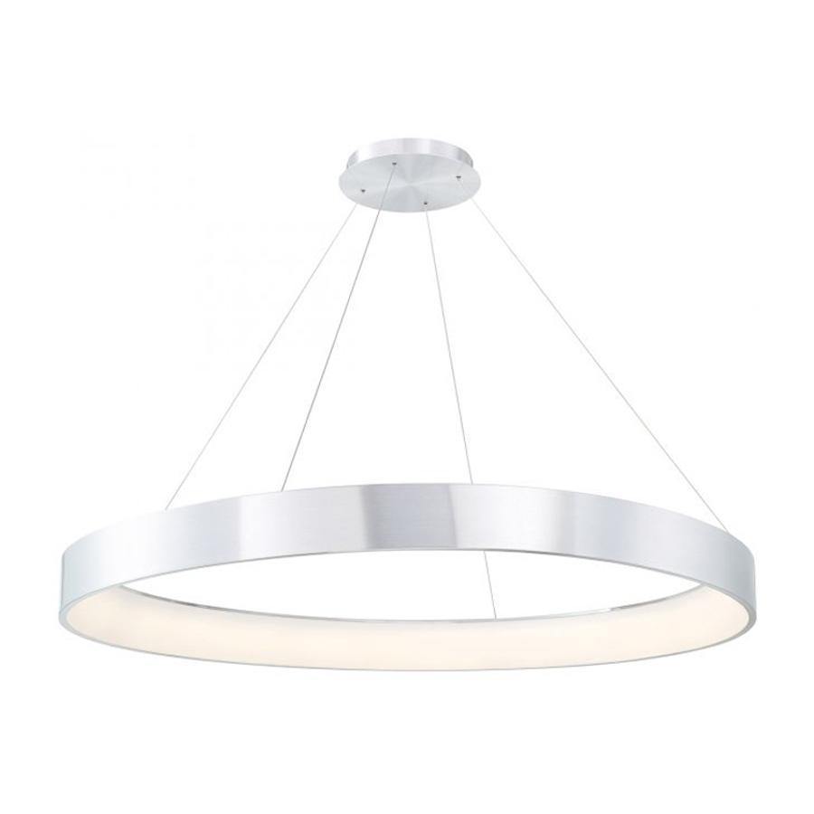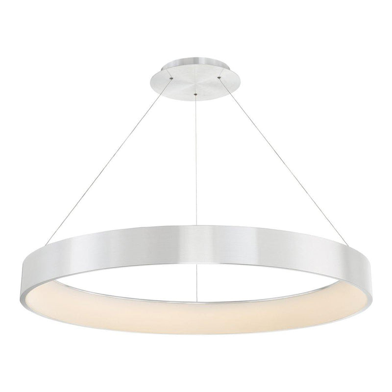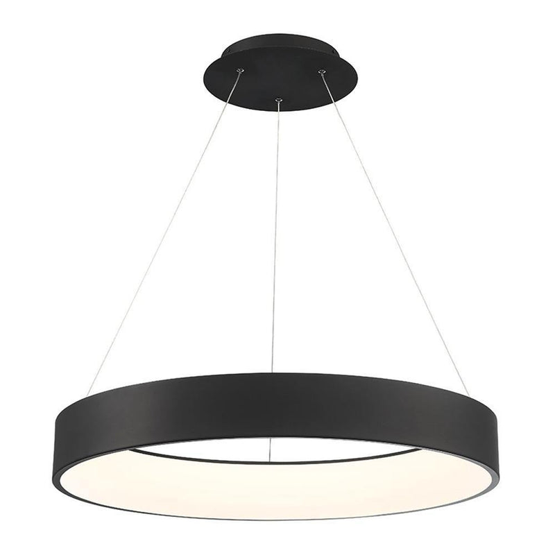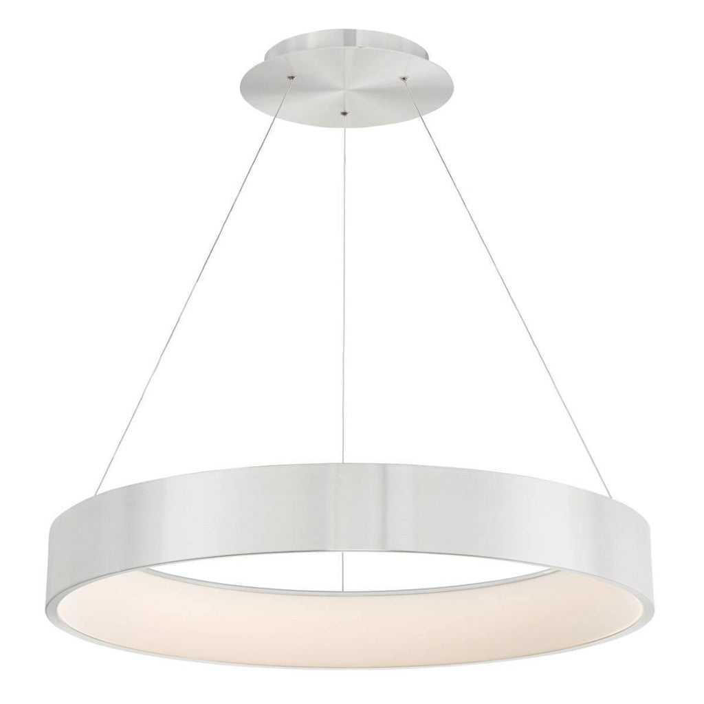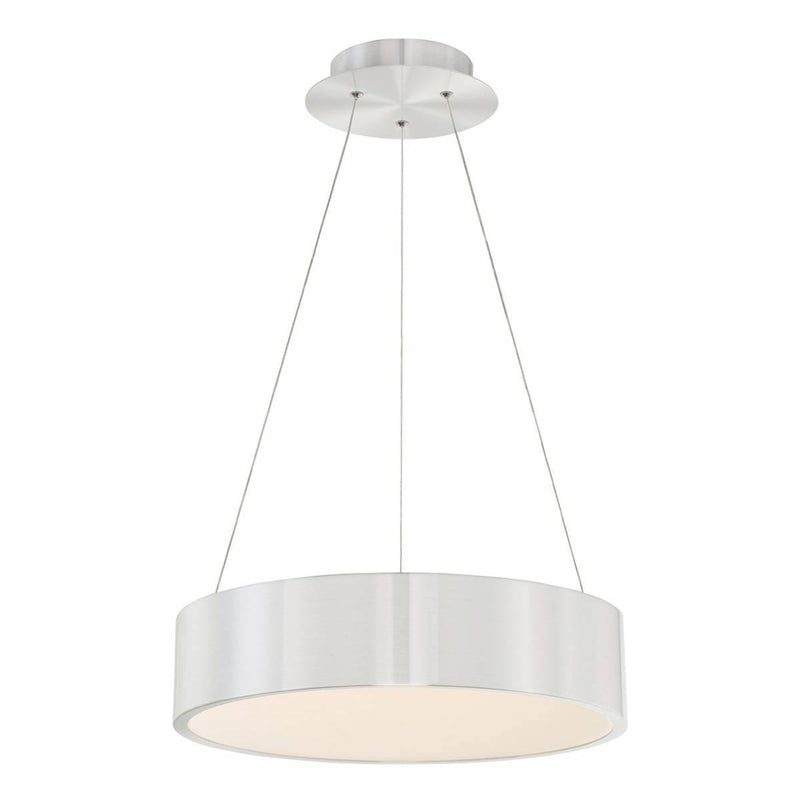 The Corso dweLED Pendant by WAC Lighting is an elegant light-fixture décor for the interiors. This pendant is available in small, medium, and large sizes in 3 different finishes. These are- white, black, and brushed aluminum. With a 3000K color temperature and 83,000-hour life, this light pendant illuminates the spaces evenly. The pendant is damp location listed and has a CRI of 80. It comes with a halo-like shape diffuser which is made of frosted glass. There are 3 thin cables attached to the diffuser which makes it easy to suspend it from the ceiling. The push-pin mechanism in the light pendant provides adjustable lengths.