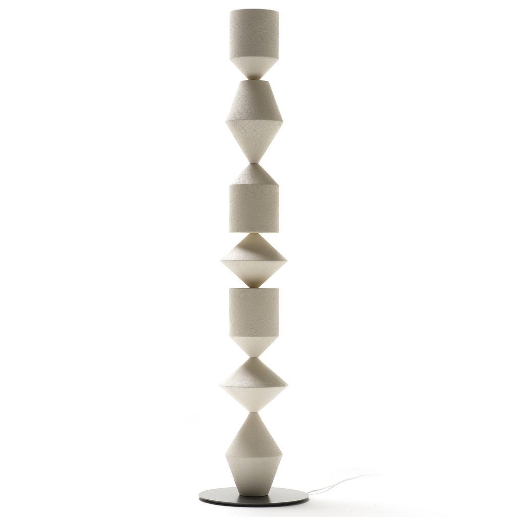 Floor lamp with indirect light and strong character that aims to combine function and personality. Both rigorous and playful, masculine and feminine, suitable for all the environments of the house. The beam of light personalizes everything that illuminates with decisive elegance.