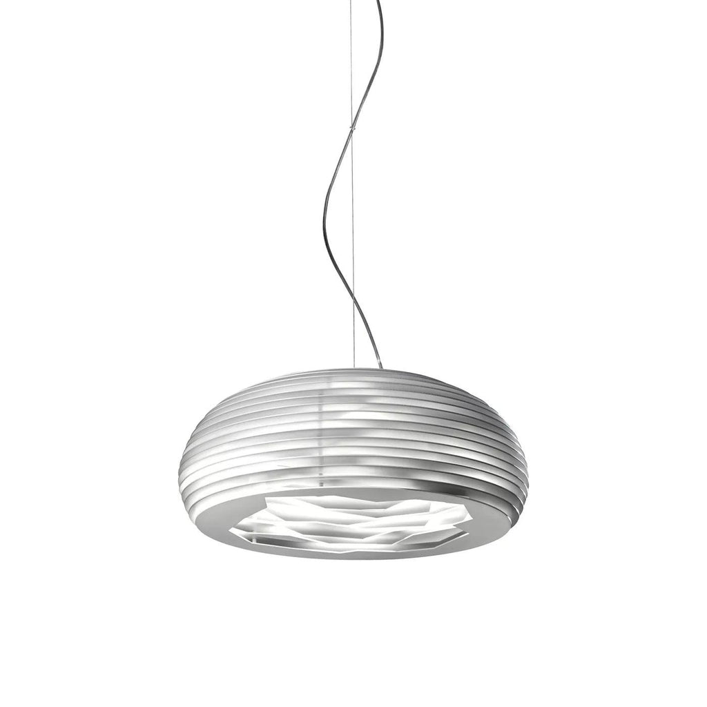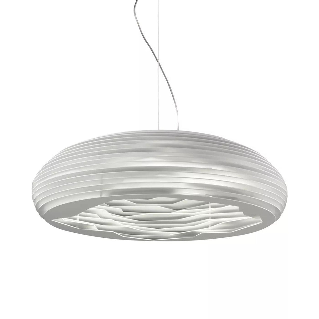 This Cueva Pendant by Morosini will make a modern update to a minimal style interior. It features overlapping foils made of aluminum that enrich the geometric arrangement inside the round shade in a matte white finish. The light emitted by the LED is diffused by an opal white diffuser to create a captivating setting. The light source produces 27000K to 3000K white warm lighting that won’t cause irritation to your lights. With more than 80CRI, the true colors of objects are reflected. It is available in medium and large sizes. Note: Bulbs are not included.
