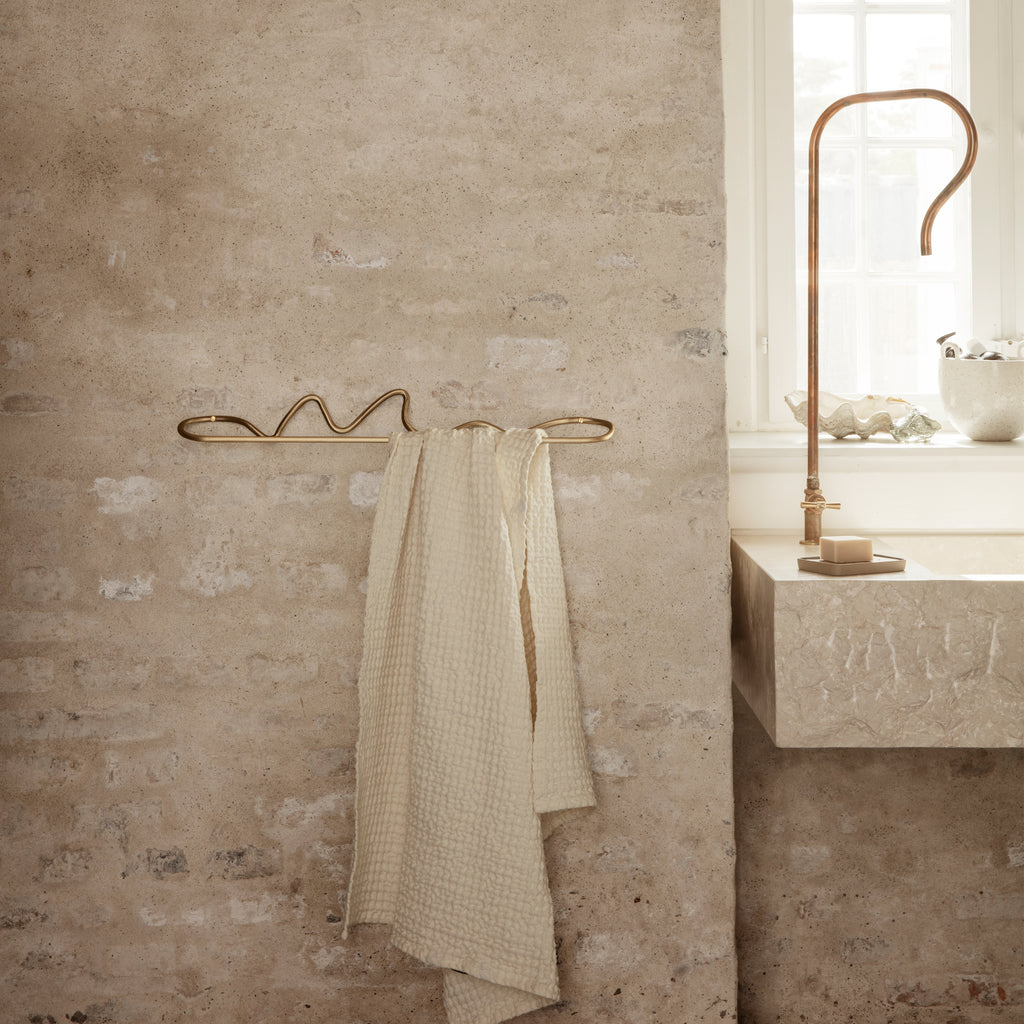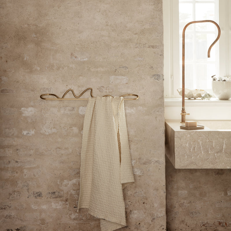 Curvature is a series of organically shaped accessories for the home that have been hand formed in pure, solid blackened brass with a matte finish. The whimsical curves juxtapose the solidity of the material, and make a feminine, functional addition to any bathroom or kitchen. With the Curvature Towel Hanger, your towel will hang fresh and dry until needed. Crafted by hand, no two pieces are 100% identical