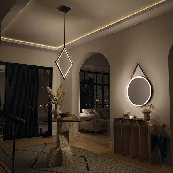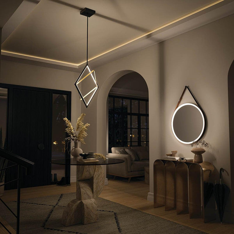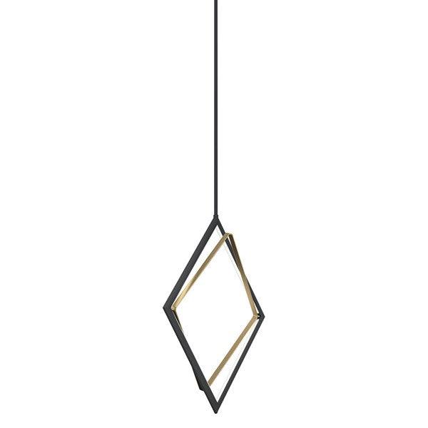 Form meets function in the Darski 27 Inch LED Pendant. The outer Matte Black diamond features integrated LEDs that reflect off the inner Champagne Gold diamond. The inner diamond can spin freely or stay locked in place. When you move it, it diffuses the light to create interesting shadow and light play. Keep it in place to create more ambiance. However you position it, Darski is confident and stylish.