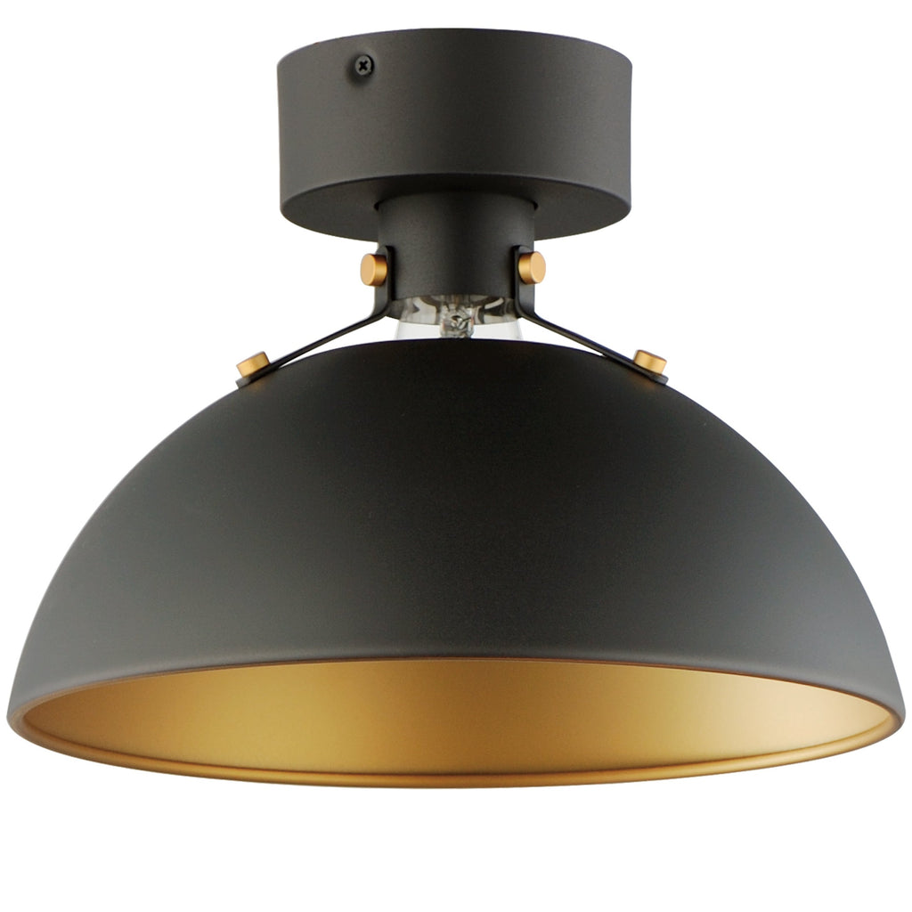 Sockets are suspended above a metal spun dome in your choice of Black or White with Gold accents or Satin Nickel with Black accents. A clean and simple approach to modern or transitional lighting, the opening allows light to shine through the opening atop while providing functional light below. This break in the two parts is supported with straps and decorative rivets in complimentary finishes for a subtlety tasteful two-tone finish. A coordinating pin-up wall sconce offers a bedside application to this design with integrated switch on its back plate and two feet of cord cover that can be removed and hardwired per your preference.