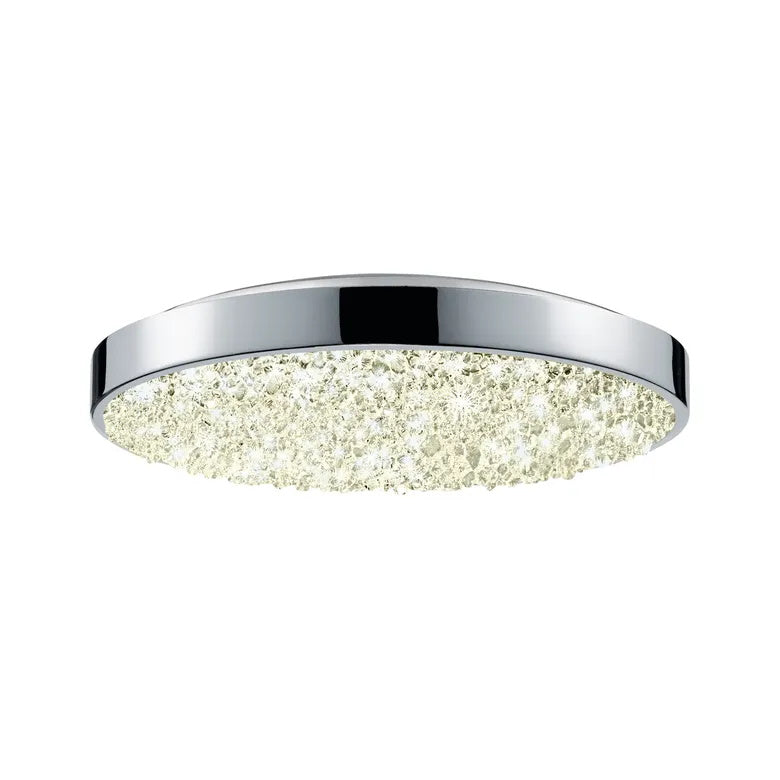 Glittering and alive, LED points of light refract through hundreds of crushed and fused glass nuggets that dance and shimmer in a spectacular display. Also available as a Bath Bar, Pendant, and Slim Bath Bar.