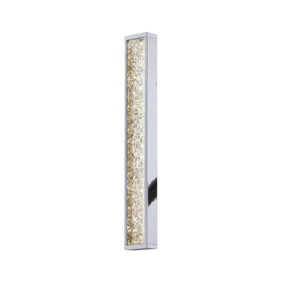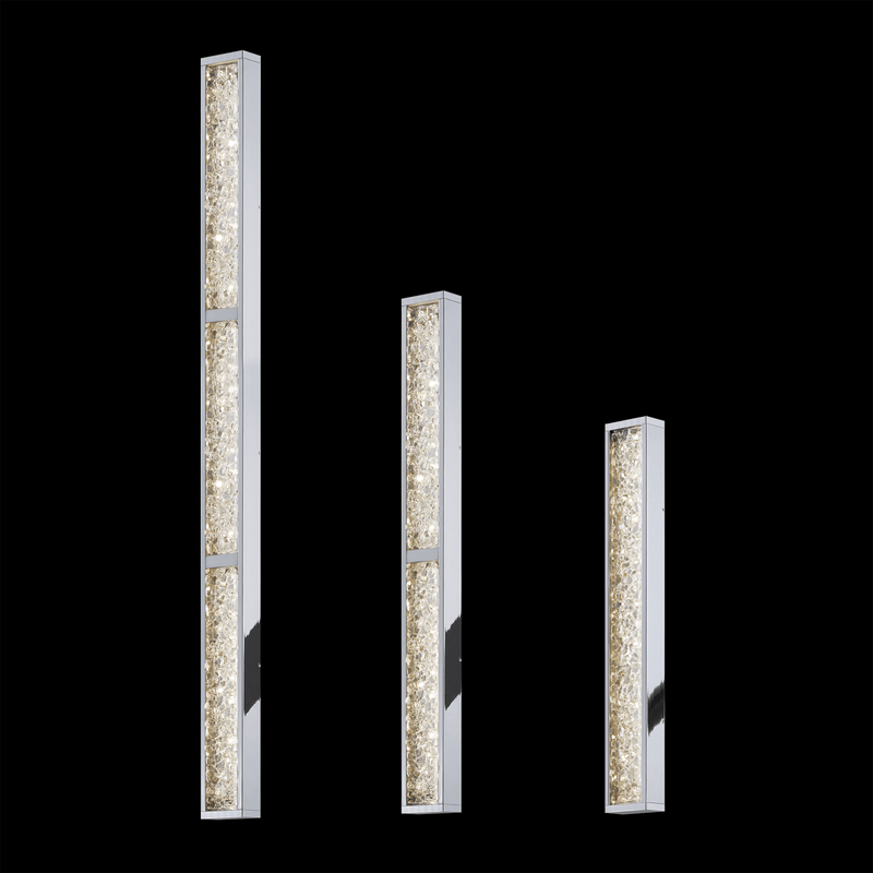 The Dazzle Slim LED Bath Bar by Sonneman Lighting is shimmering lighting for bathrooms. Its sleek profile is perfect for a space-restricted interior, while the LED module emits bright light. While this LED light source saves energy, an integrated ELV dimmer doubles-down on these savings. Featuring numerously crushed and fused glass nuggets, Dazzle Slim has a decorative side to it. It is available in small, medium, and large sizes. Its polished chrome finish makes the fixture versatile, which means it will blend in with any modern interior, be it luxurious or minimalist.