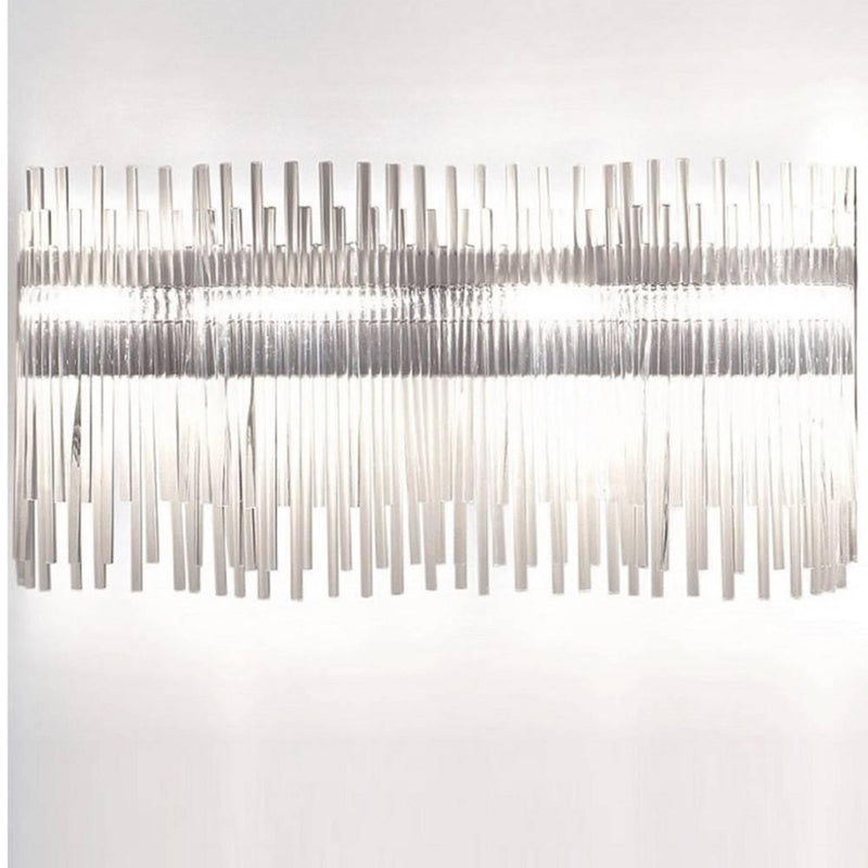Enhance the aesthetics of the indoor spaces by mounting the Diadema AP K3 Wall Light by Vistosi. Boasting a beautiful design with a classy pattern this pendant light creates a naturally beautiful ambience in the living rooms, bedrooms, dining areas or entrances. Multiple reeds of glass in different sizes stand accurately on the metal frame. Both the chrome and bronze finish of the metal frame looks elegant, and each of them complements well with any décor setting. Once lit, this wall light creates an attractive reflection of light.