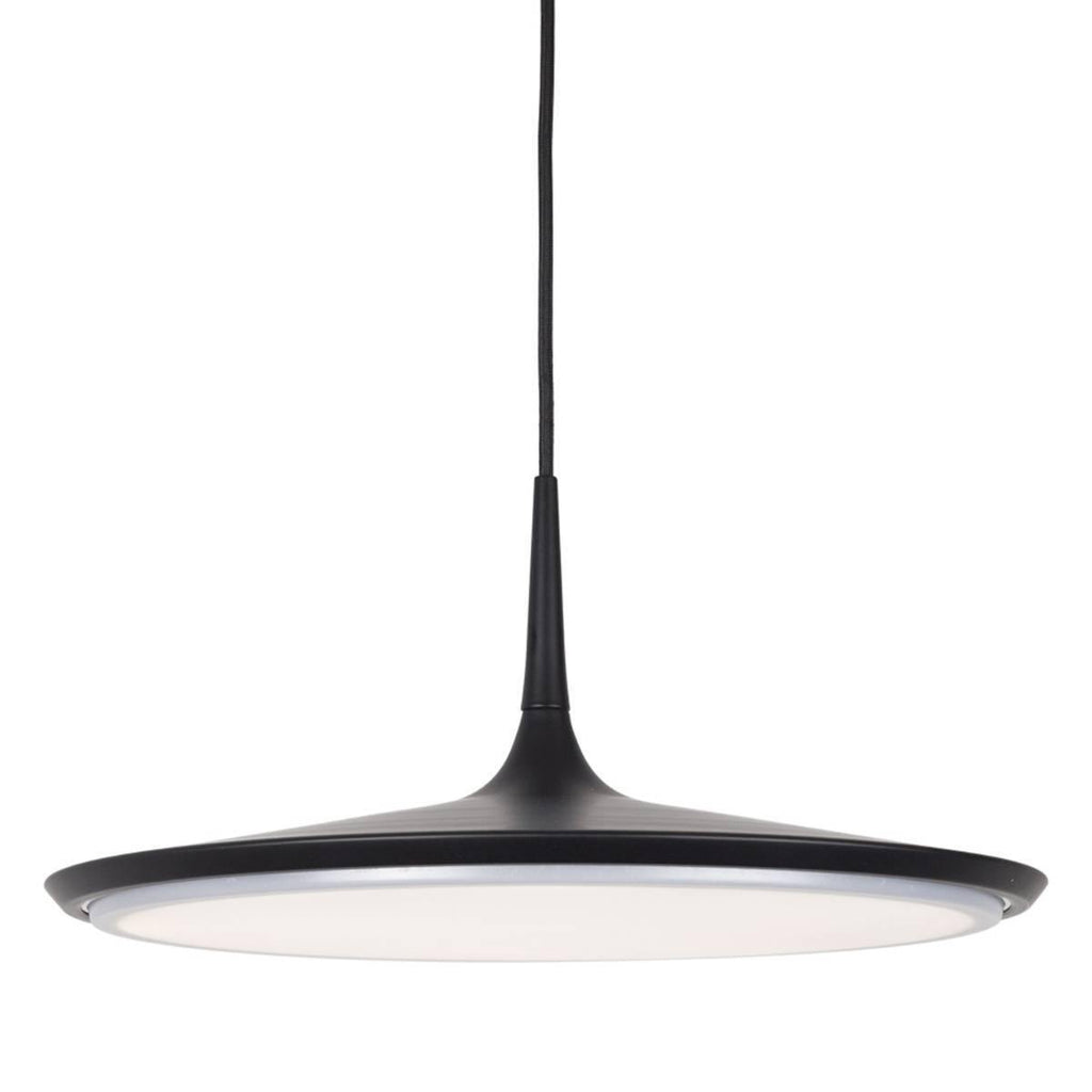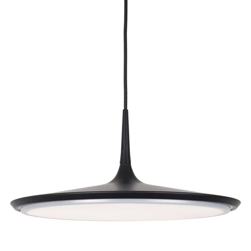 Perfect for decorating your home, this Disc Pendant by Kuzco Lighting looks stylish and elegant in any area. The light has a 3310 lumen LED bulb that offers 3000 K color temperature, supports 40 Watts, and the white acrylic diffuser scatters light all over evenly. The pendant light is available in three finish options including white, black, and chrome. Its dimming percentage is 100%-10% that is dimmable when a TRIAC or ELV dimmer is used. The easy-to-adjust black SVT cord lets you hang it at a length of maximum 120”.