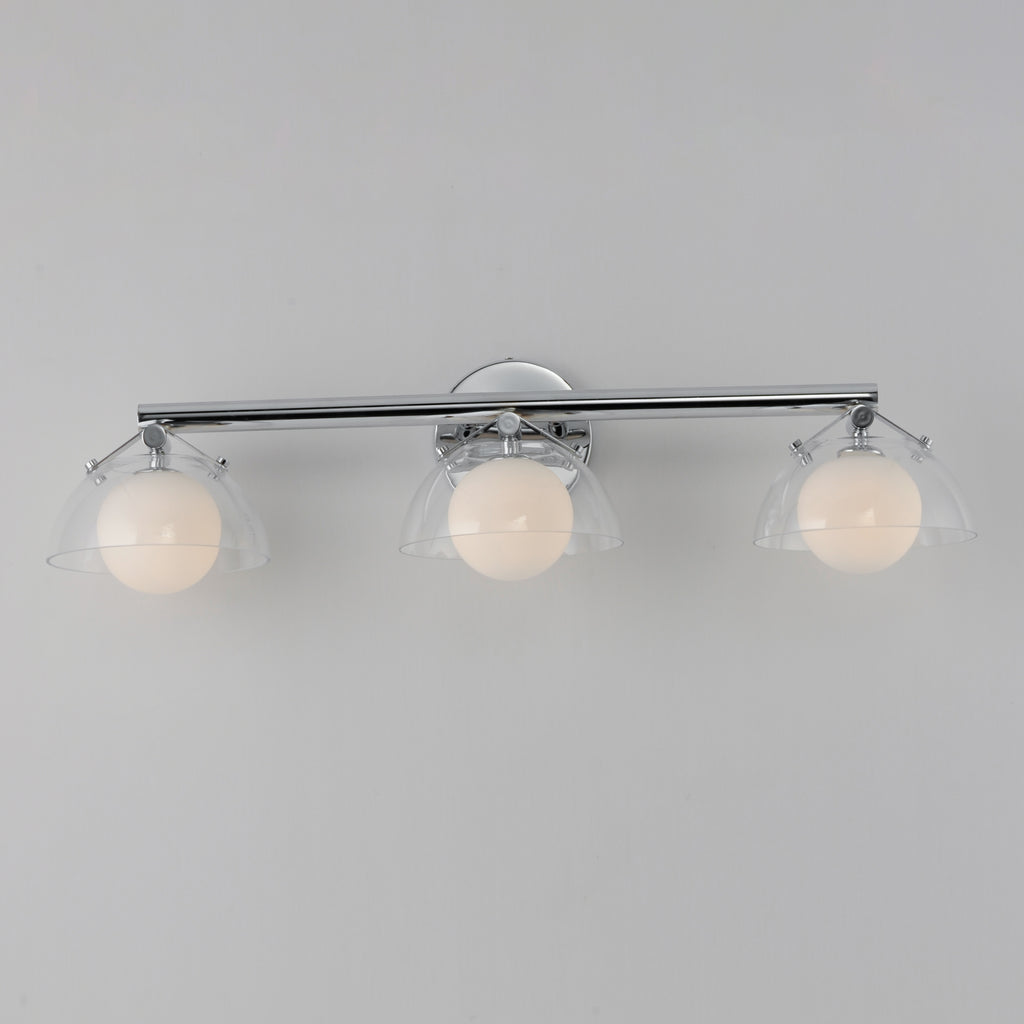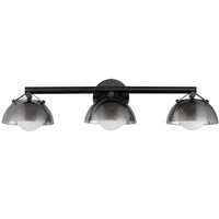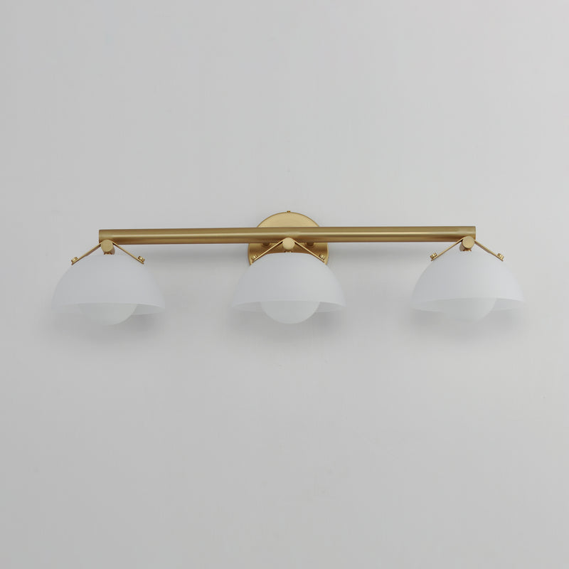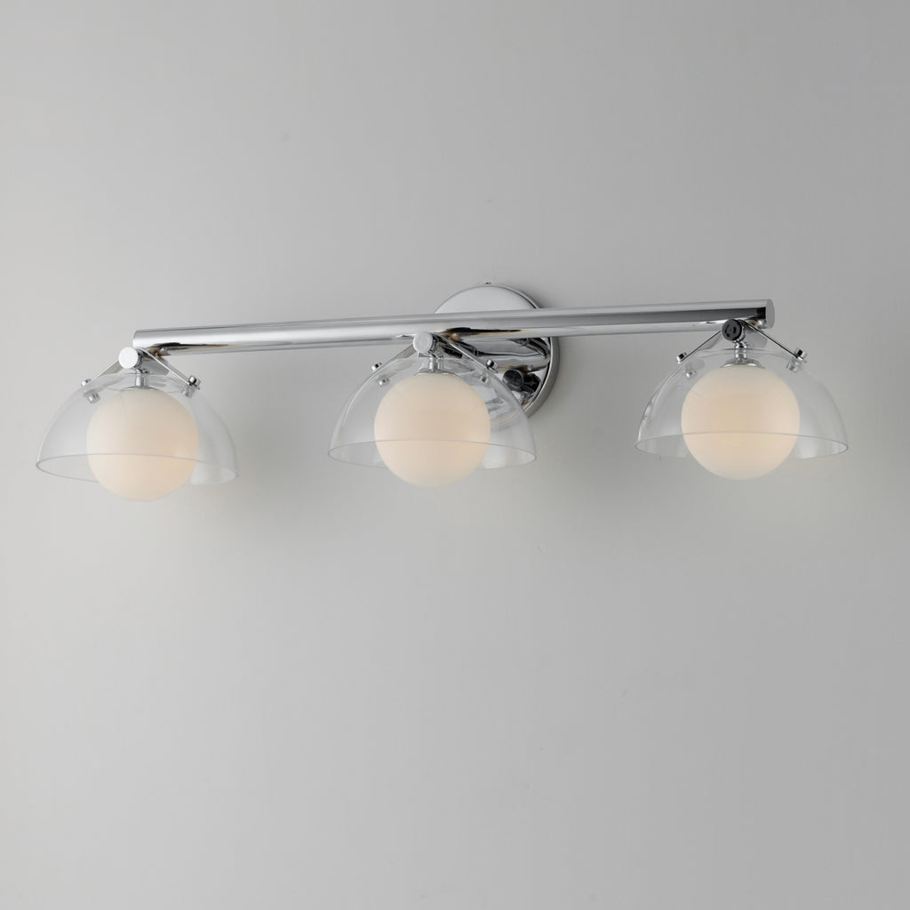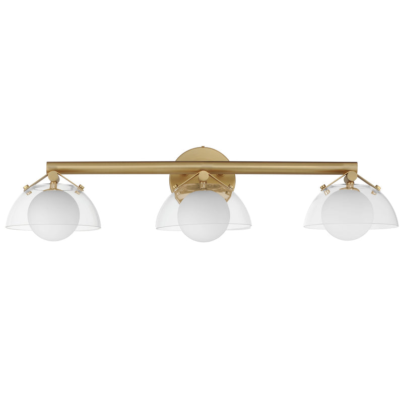Emblematic of his casual, sophisticated style, Mat Sanders' Domain series include an all-inclusive assortment of applications and finishes Featuring a truncated sphere open at its top and bottom, an internal globe of Opal White glass shades provide ample LED lighting. The outer glass shade is suspended by a strap of stitched leather to compliment the metal finish. Available in acid-etched Satin White glass with Natural Aged Brass, crystal clear glass with polished Black Nickel, or smoke-striped clear glass with matte Gunmetal. The sconces, in consideration of damp locations, have forgone the stitched leather detail. The standout two-light 36" pendant is scaled for island and dining use. Semi-flush mount and complementary sconces round out this collection presenting a complete assortment of ceiling and wall-mounted lighting products suitable for use in bathrooms and other interior spaces. Mat Sanders' diverse period influences have created a fascinating combination of design elements.
