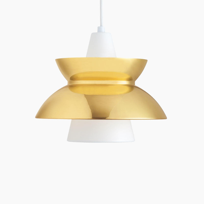 The Doo Wop Pendant by Louis Poulsen is expressively designed to match the modern lifestyle. The fixture was designed in cooperation with the Navy Buildings Department and is used widely because of the unique lighting system. The inner conical reflector has a white lacquer finish which diffuses the light softly in a downward direction while the outer reflector diffuses the light in both upward and downward direction. The shades of the pendent are hand spun and have finely rolled edges that make it look architecturally clean and smooth. The pendant light uses halogen light source to provide a glare free and warm experience to its viewers. The outer shades are available in brass, dark grey, white, copper and polished stainless steel finishes.