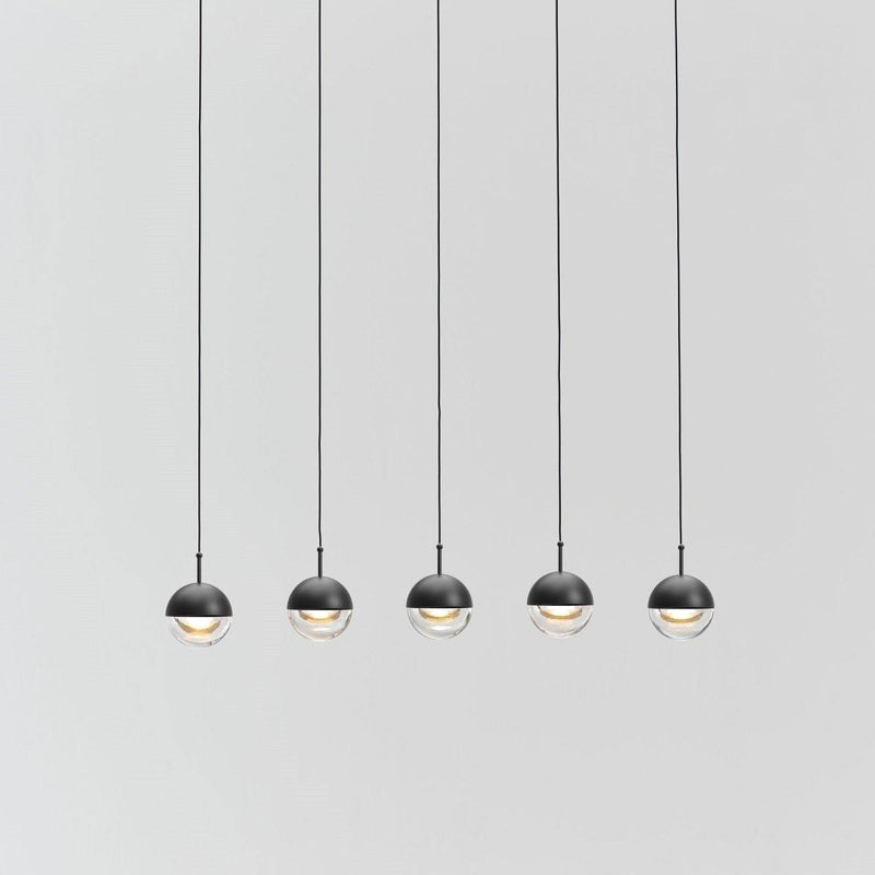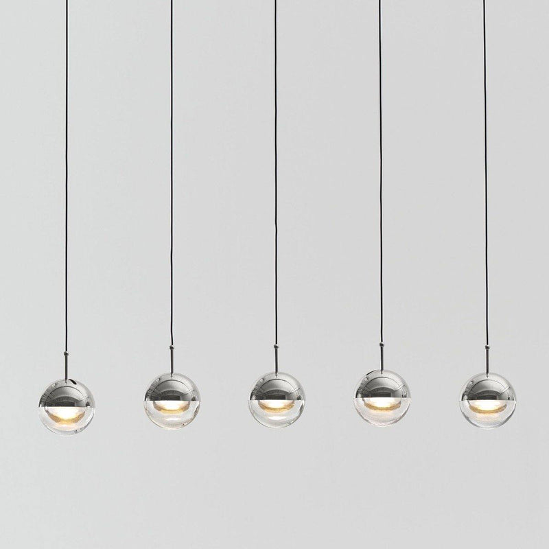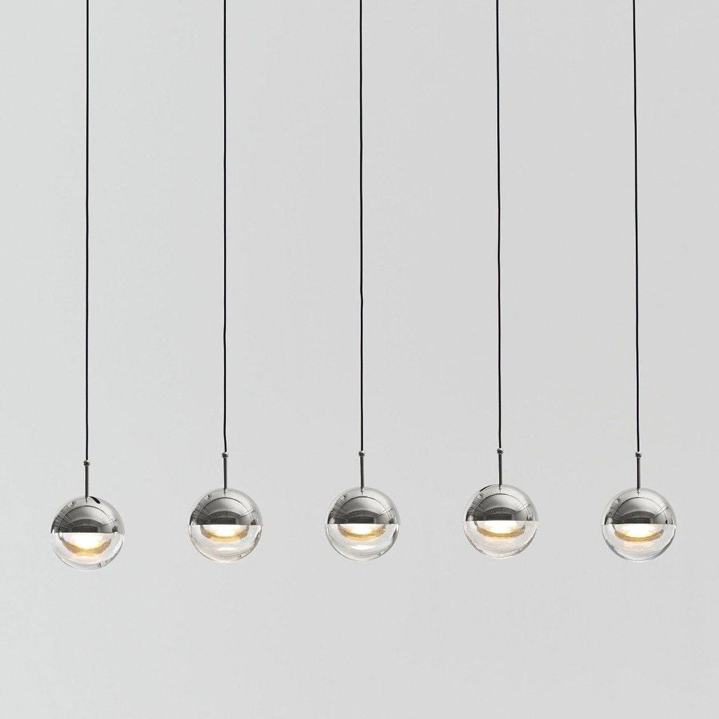 Chic in style, the Dora Pendant – 5 is a fun-looking luminaire that is designed to blend with any modern interior of a residence, resort, hotel, or office. Perfect to be placed on a Kitchen Island, hallway, staircase, above the dining table, and galleries, this suspension is a beautiful way to lighten up the atmosphere. Fitted inside is a CRI 90 LED light source that emits bright light through the glass balls, but without heating up the temperature of the place. The luminance of Dora is evenly distributed through the glass. Available in copper, shiny brass, matt black, and chrome finishes.