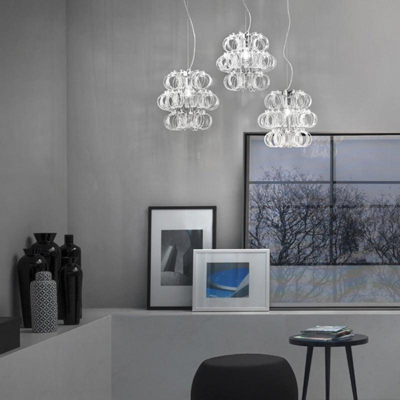 Evoke a unique style of sense in the indoor spaces by installing the beautifully designed Ecos SP 35D1 Pendants by Vistosi. The ecos pendant light has a lavish design as it is made by uniting multiple blown-glass rings, which creates an elegant floral pattern. Designed to perfection, this decorative piece complements well with contemporary interiors and modish décor setting. You can mount this light in the living rooms, dining area, hallways or entrances. The pendant light is available in bronze finish and chrome finish. Crystal transparent and white are the two shade options of this pendant light.