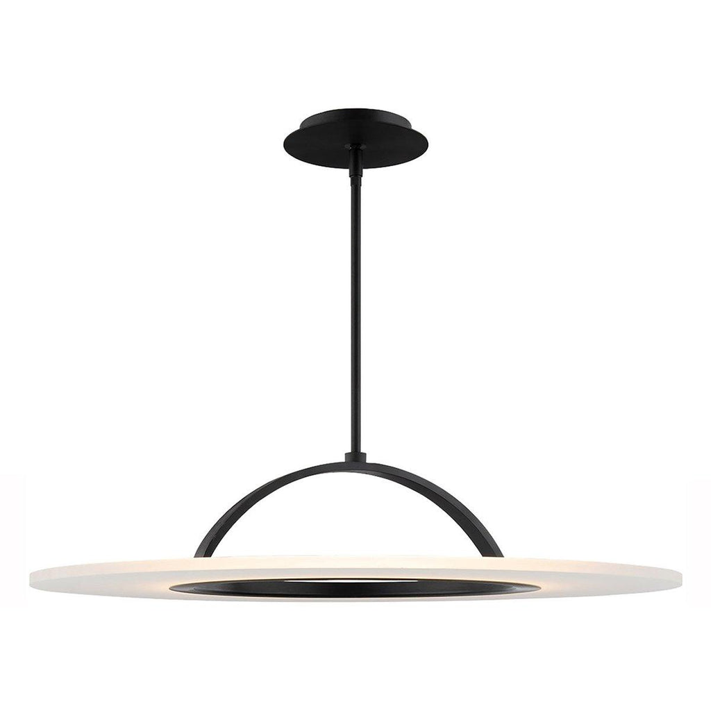 The Elektron dweLED Pendant/Semi-Flush mount by WAC Lighting provides your space a modern look. It has a unique layout with side lit acrylic diffuser which is hollow from the center. This is a versatile lighting fixture that can be used either as a wall sconce or as a ceiling pendant by removing the brushed aluminum down rods. The hidden LEDs throws a soft white light up to 3000K. It does not change the object’s actual colors as it offers a color rendering index of 90CRI. This energy efficient light keeps your area illuminated for up to 36,000 hours. It is available in small and large sizes.