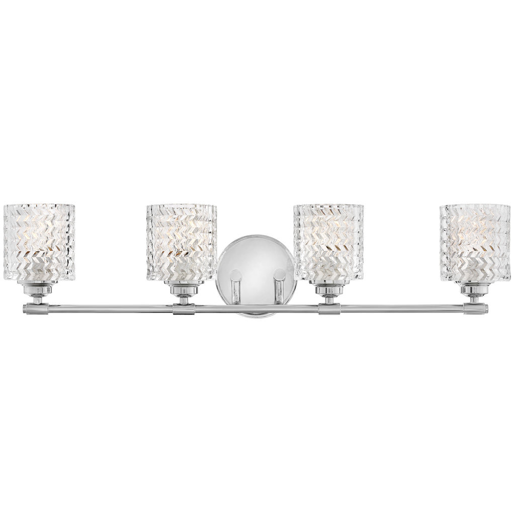Traditional elegance with a modern edge defines Elle’s graceful design. A rich, chevron cut, clear glass is the dramatic focal point, complemented by a gleaming Chrome finish. The softly rounded steel back plate is finished with luxe stepped detailing to complete the design