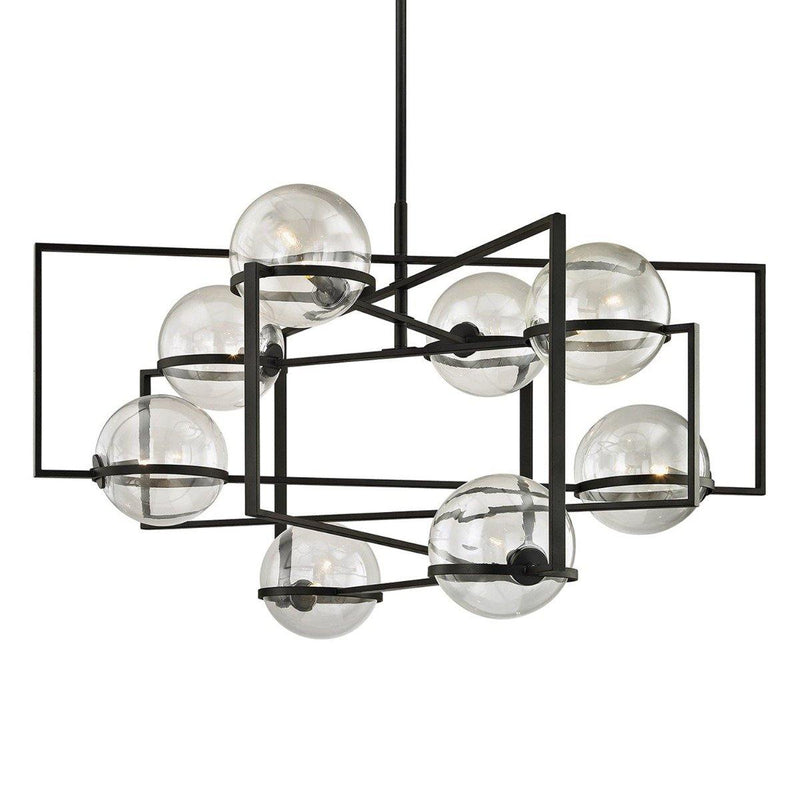 Add a combination of stylish design and sparkling structure to your ceilings with the Elliot Chandelier from Troy Lighting. A metallic structure suspends from a rod, resembling a modern mix of lighting assembly. Clear glass spheres restrained by metal-caps and accents cast an ambient display around the house. Finished in old textured black detail, this lighting device uses G9 wedge base xenon light source. You can get it in three sizes; small, medium, and large. Suitable for various environments, you can also gift this chandelier to friends and family.