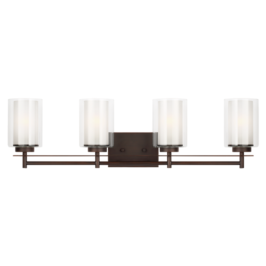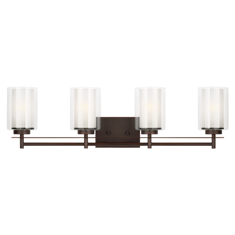 Elmwood Park by has clear glass tube shades with an inner white glass element that softens the light and helps cast an even glow.