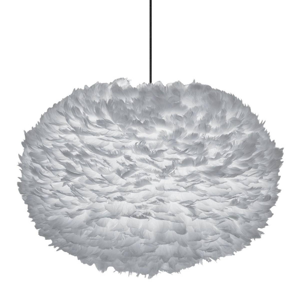 Light and airy, Eos pendant light is made of natural goose feathers, that give this fixture an authentic and natural look. Goose feathers that would otherwise be burned are instead sanitized and applied by hand on a paper frame to create this unique shade. Designed in Denmark by Soren Rayan Christensen. easily cleaned with hair dryer. Comes with or without a canopy.