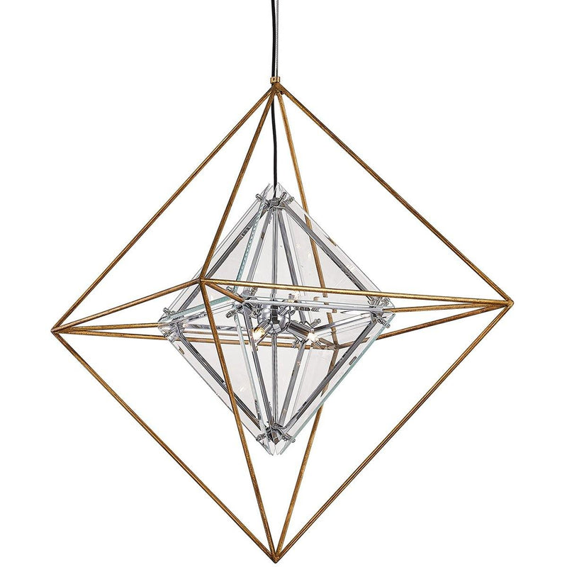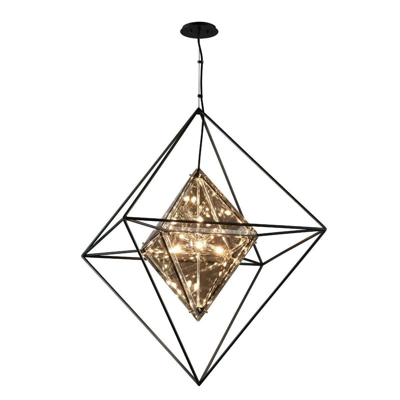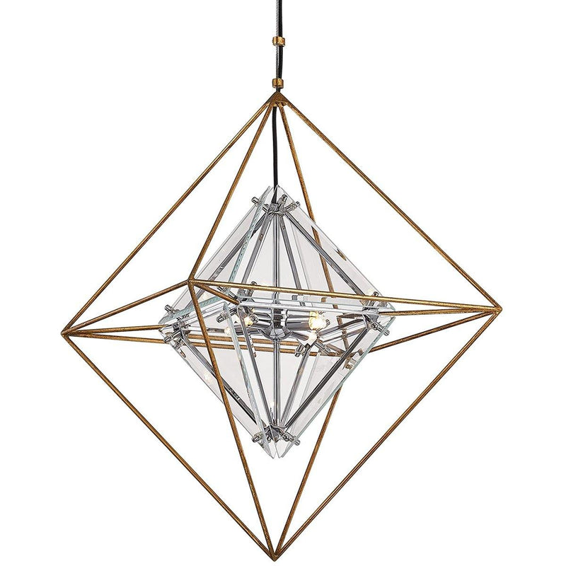 Evoke a unique sense of style in the living spaces by adding the Epic Pendant by Troy Lighting. Featuring a traditional design with an ultra-modern appeal, this Troy Lighting is designed with a rhombus shaped plated topaz glass shade that adds a touch of elegance to it. Also, it has a cubical shaped cage design that is made with a sturdy material. With the delicate appeal and hand iron metal work with polished chrome detailing, this Epic Pendant looks gorgeous both in the indoor and outdoor spaces. The forged iron finish of this pendant enhances its overall look.