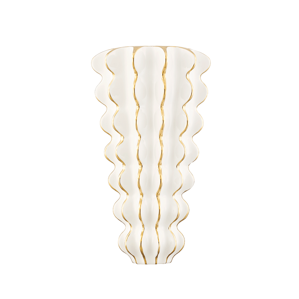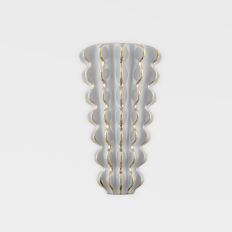 Inspired by sea life, Esperanza is both refined and organic. The wave-like rippled form brings a sense of movement to the design and the gold edging adds just a hint of sparkle. Light fills the ceramic gloss form from within with a beautiful light that reflects off the gold edging. Available in ceramic gloss gray or white gloss.