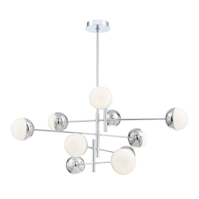 Amp up the look of your living room with this Fairmount 10 Light LED Chandelier by Eurofase. It is a modern piece of lighting that features a geometrical built with vertical and horizontal rods with 10 opal white ball diffusers. Integrating LED lights, these diffusers beautifully scatter the light produced by them. This modern chandelier comes in two different finishes- black and chrome that makes it look even more attractive.