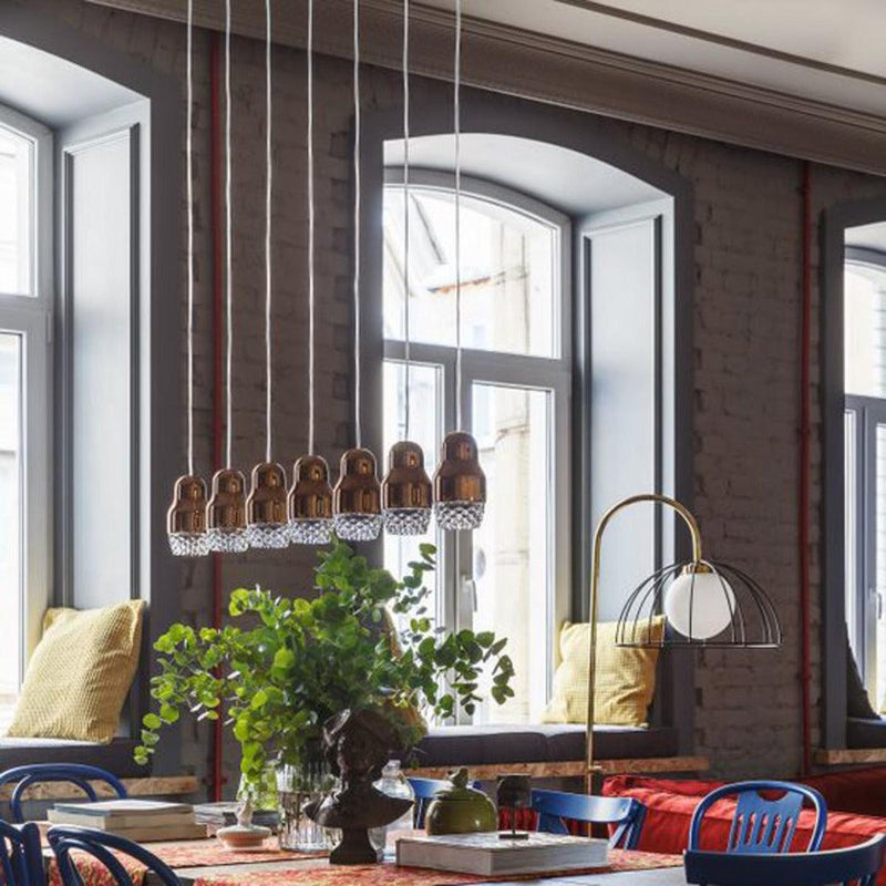 Add panache to your existing mundane set up by infusing the artistically designed Fedora 7 Light Pendant by the creative team of Axo Light. This lighting fixture comes infused with the LED bulb technology, making it a perfect addition for absolute illumination covering the complete interiors efficiently. Versatile enough to match all decor set ups, this easy to install and maintain 7 branched light promises to accompany you for years to come. It is available in the color choices of rose gold and bronze to choose from.