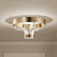 Depicting a classic design in a modernized style, the Festa Ceiling Light is accentuated with various decorative elements that add a brilliant visual effect. This ceiling light has a charming placement of curved blown glass tubes that are surrounded by metal bands for a sophisticated look. A stylish ceiling light that offers a soft and natural glow in any living space. Both brushed gold and brushed chrome finish add an alluring touch to any type of interiors. This ceiling light is available in various colors, including amethyst, milk white clear, clear, blue denim, smoked, grey, ocean, and topaz.