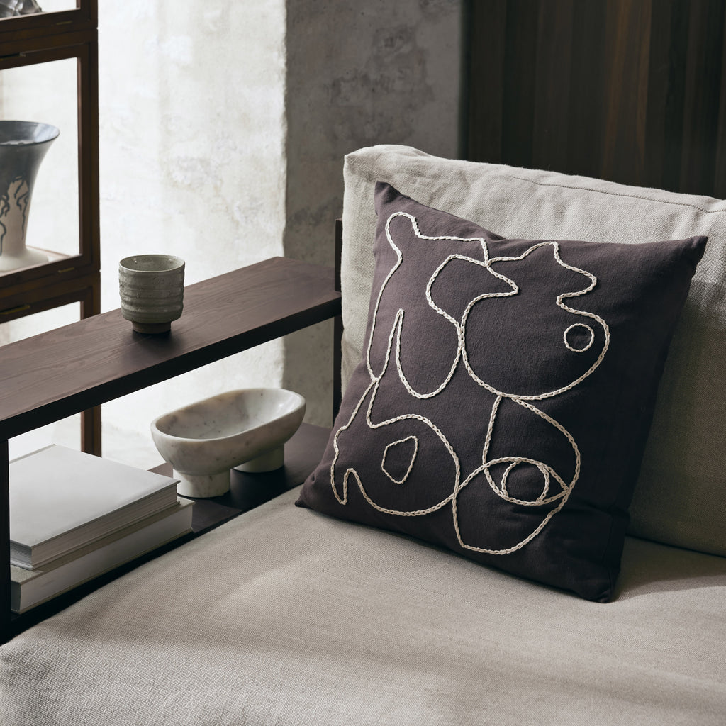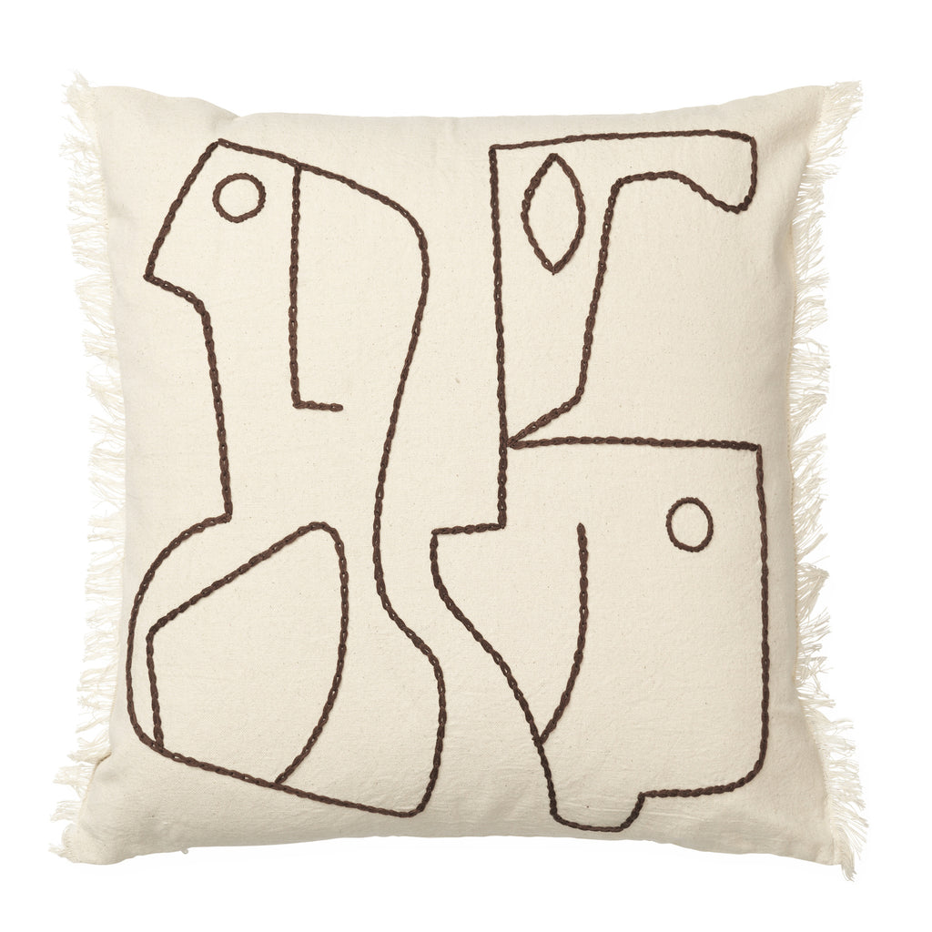 Infuse your space with a soft yet graphic touch using the Figure Cushion. Crafted from GOTS certified, organic cotton, the cushion cover features abstract, sculptural figures and hand embroidered detailing.