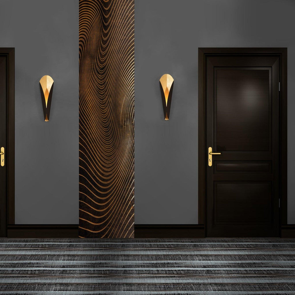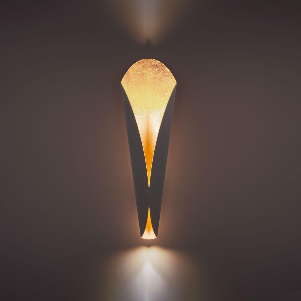 Sculptural, sensual, luscious. Bask in the enchanting up and downward illumination with the ADA wall luminaire, designed brilliantly for modern living areas. The bronze profile with divine gold leafing creates curves and shiny profile commanding attention.