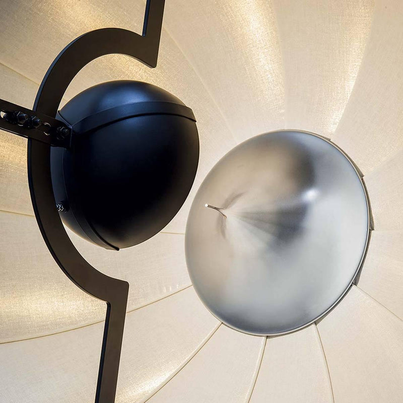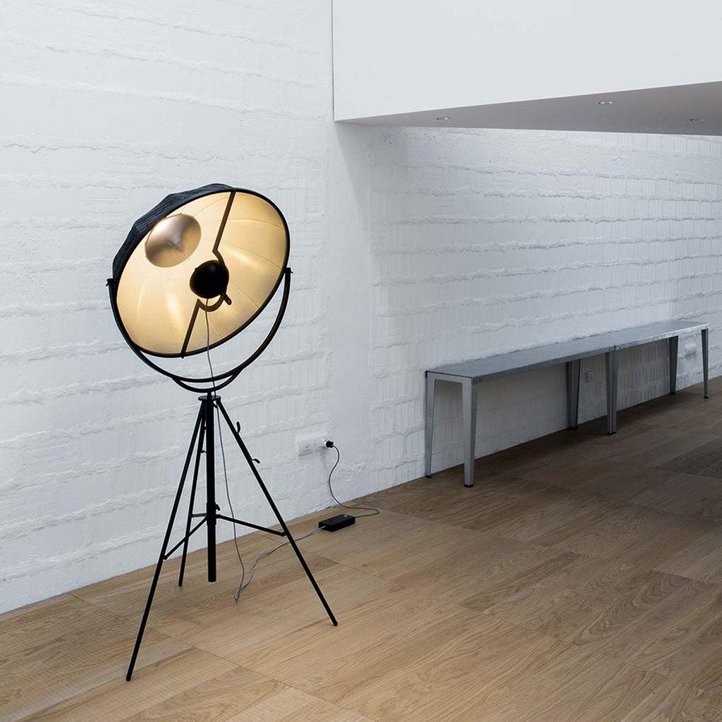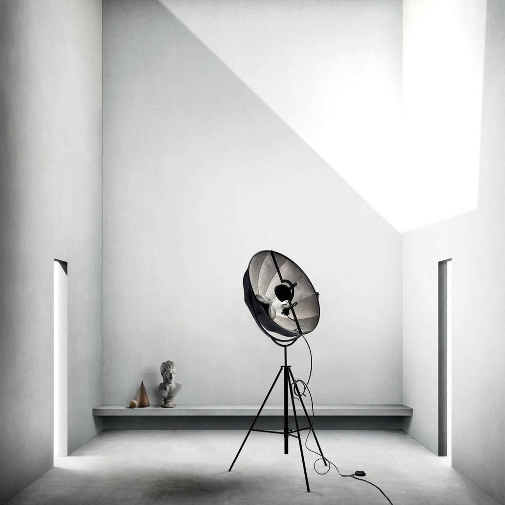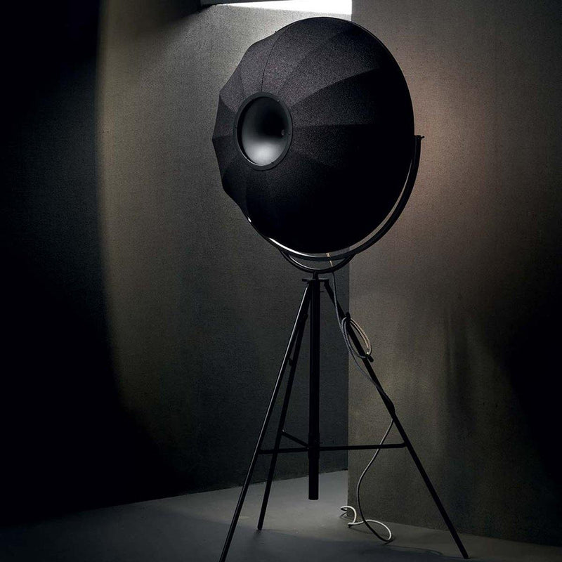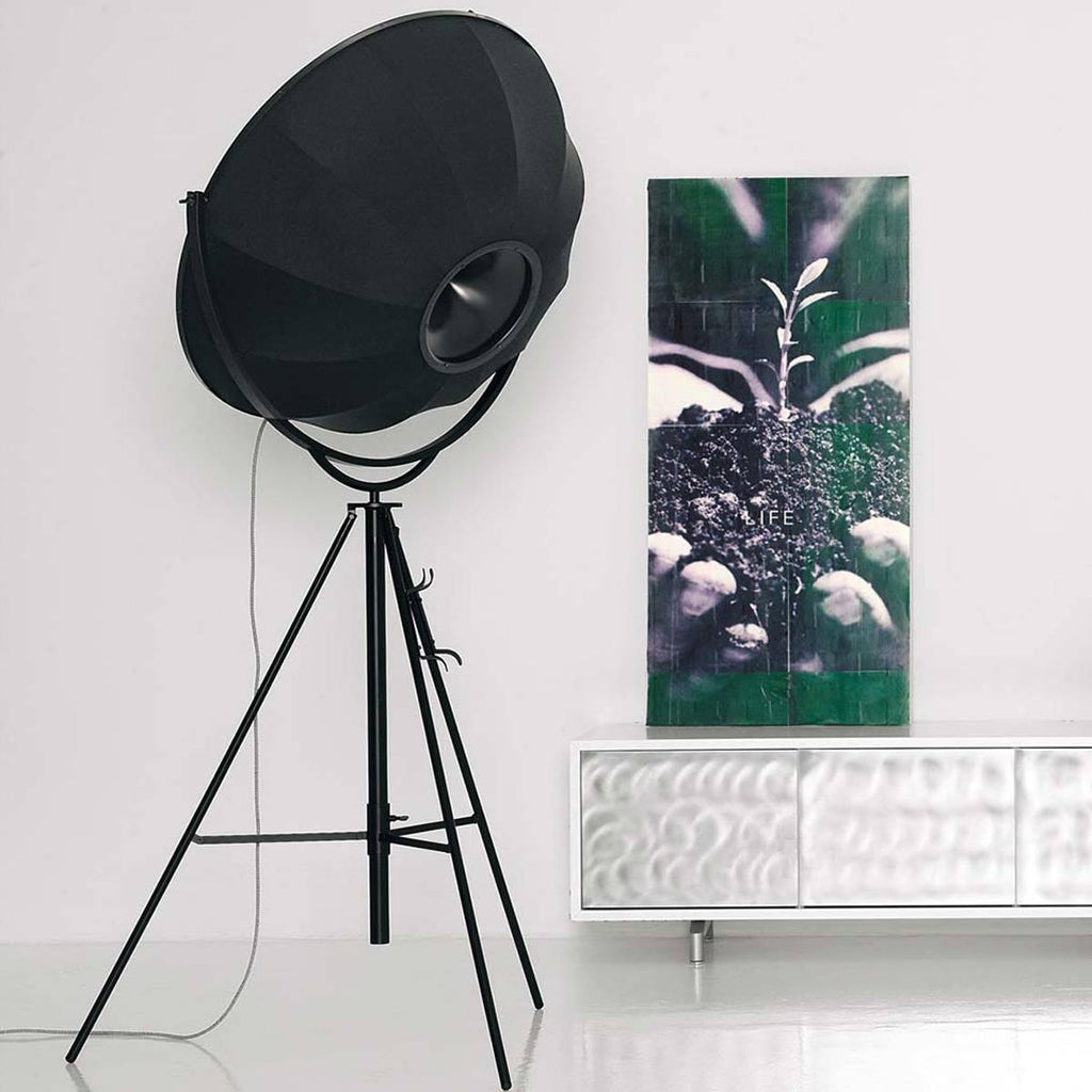 Every day is a smart photo shoot setup in your house when you set a lighting fixture like the Fortuny Floor Lamp from Pallucco. It features a stylish upgrade to the standard umbrella, tripod floor lamps. With its E39 stage lighting arrangement, it lights up an area effortlessly. This product is available in several different color combinations, such as Black with White, Beige with White, White with White, Black with Gold Metallic, Semi-gloss Black with Bronze Metallic, and Semi-gloss Black with Metallic Silver. It is also offered in Black, Titanium, and White finishes.