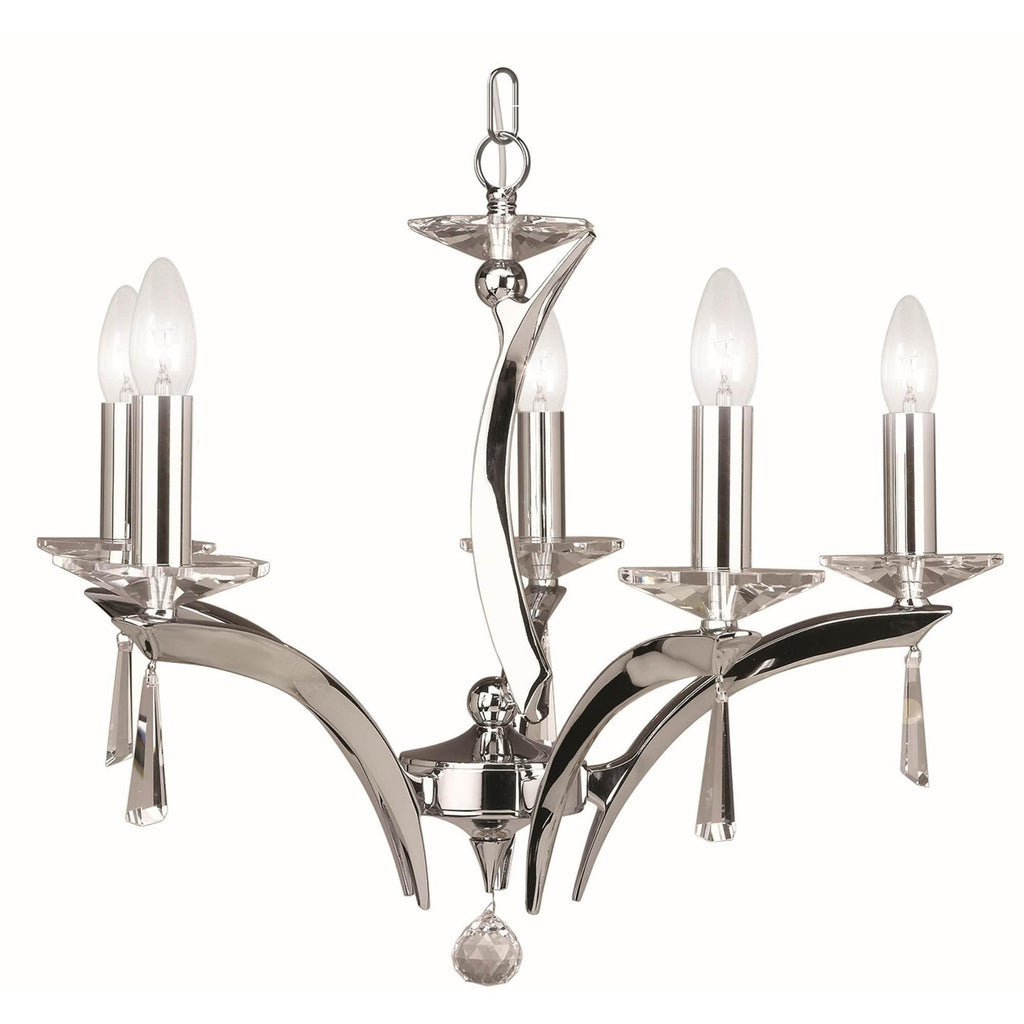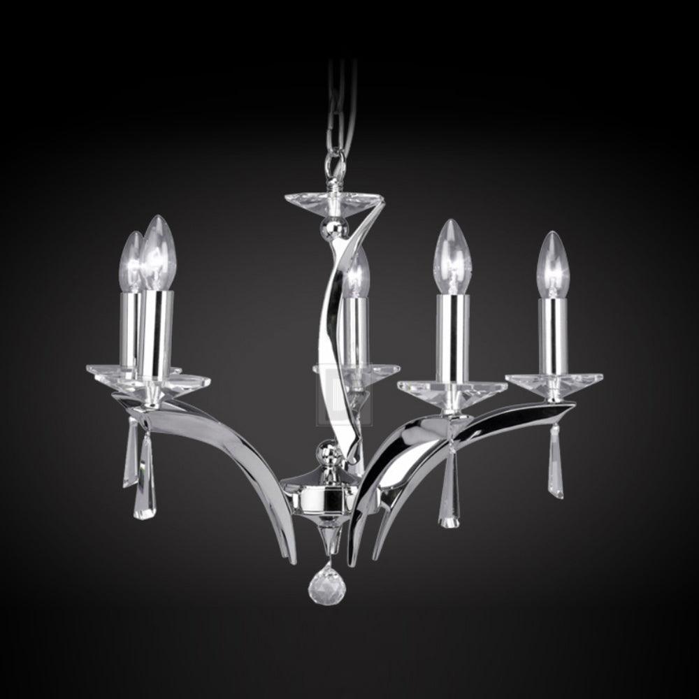 The Forum 1708/5 Chandelier by Pedret is sure to add an instant dash of style to the interiors of your house. Designed using premium quality products, this chandelier features a unique shape. Available in shades of chrome, gold and titanium, this beautiful lamp is compatible with incandescent bulbs. This chandelier does not require any additional tools for its installation and is easy to maintain. Adding to the beauty of your interiors, the Forum 1708/5 Chandelier will definitely be a perfect pick from the collection of Pedret.