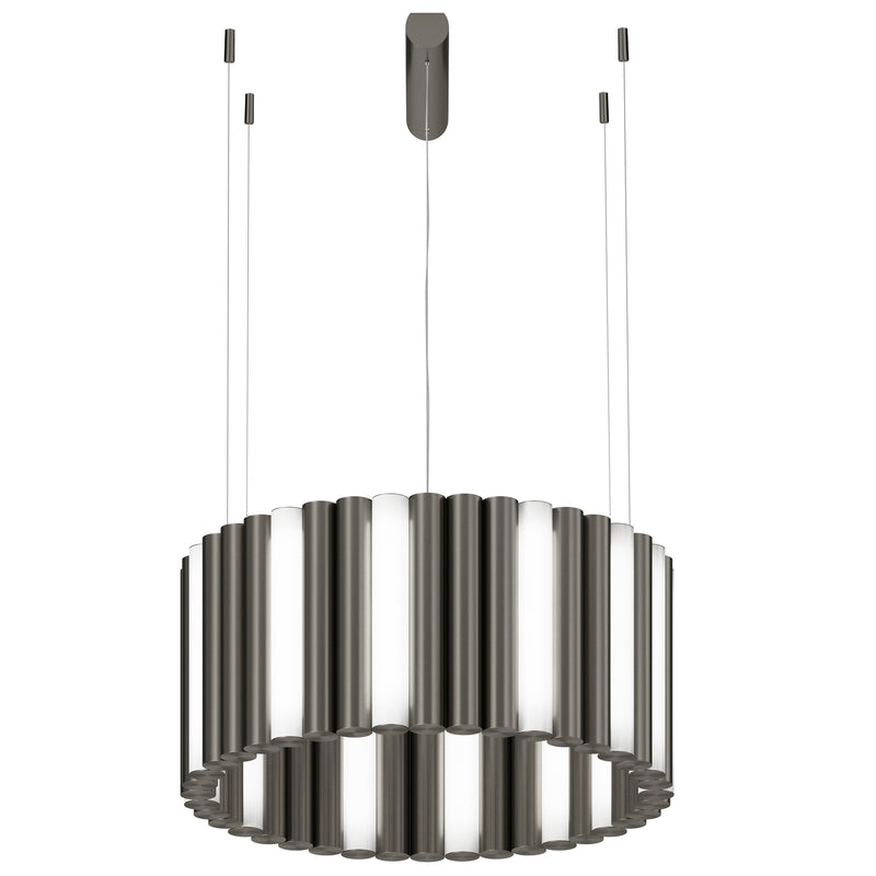GAMMA is a striking and versatile lighting system. The design of this collection is based on the multiplication of metal tubes and opal white luminous cylinders, assembled like a chain.