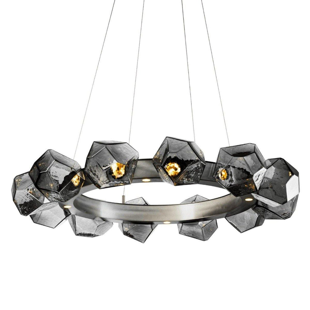 The Hammerton brand was created in 1995 by two men that shared a passion for the art of metal craft and ornamental iron fabrication. Since then, Hammerton has become a true leader in lighting design through its uncompromising aesthetic and functional designs. In addition to using steel for its production, Hammerton has been expanding its collections to incorporate other materials such as artisan glass, woven steel mesh, acrylics and crystal as well as various metals and textiles. Hammerton’s collections include ceiling lights, pendants, chandeliers, table and floor lamps, amongst other decorative lighting pieces.Gem Radial Ring Chandelier