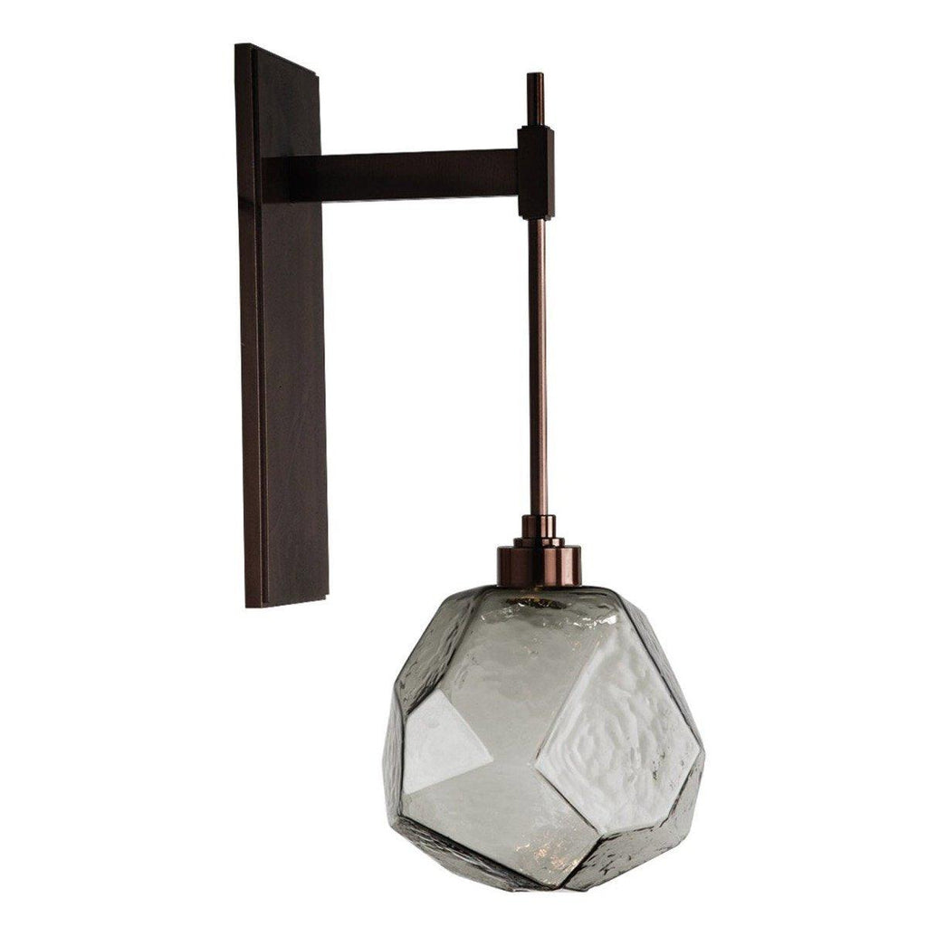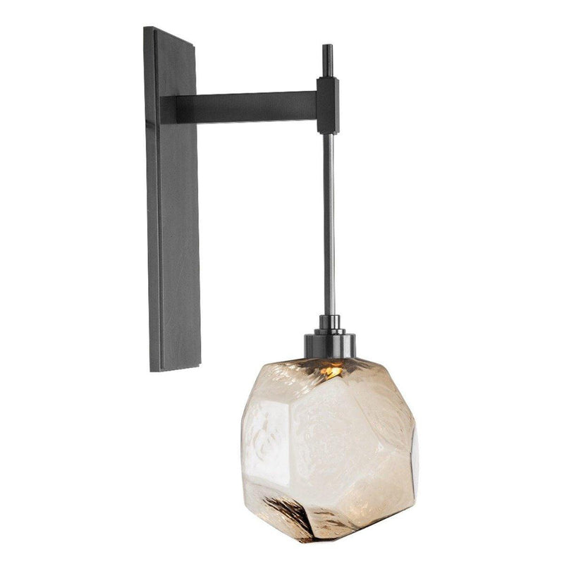 Be it a corner of your city apartment, small eating table in the kitchen, or a bedroom, the Gem Tempo Sconce from Hammerton Studio can illuminate diverse range of décor styles, places and rooms. Gem Tempo features a rectangular backplate in bold black shade that suspends one hand blown glass gem, giving an elegant appeal to your place. You can choose the shade of gems from 4 options (clear, bronze, amber and smoke), and the finish from the available 8 options (gilded brass, heritage brass, flat bronze, metallic beige silver, gunmetal, satin nickel, oil rubbed bronze and matte black finish). Using an LED light source, this sconce gives a warm, ambient display.