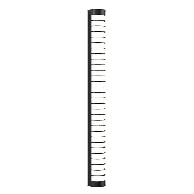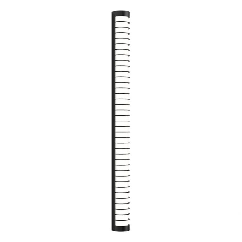 The rhythmically aligned circular fins of this architecturally precise linear composition delineate its solid, functional geometry. Mounted vertically or horizontally on a wall or ceiling, the crisp pattern of fins defines a disciplined rhythm of length and scale.